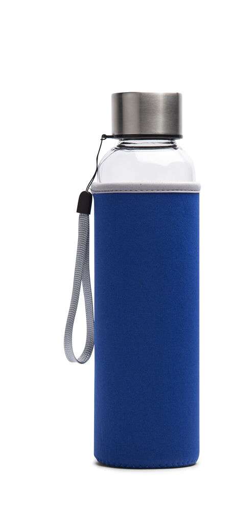 Flaska av borosilikatglas med neoprenfodral i valfri färg som passar var person, flaskan går bra att diska i maskin.