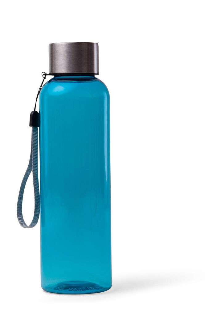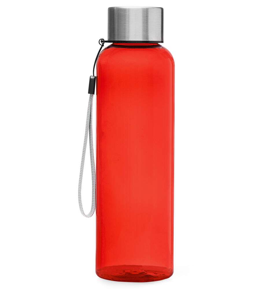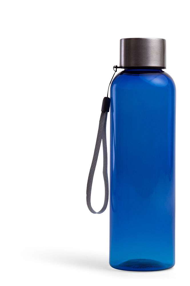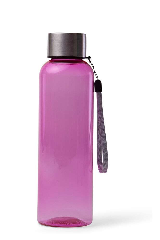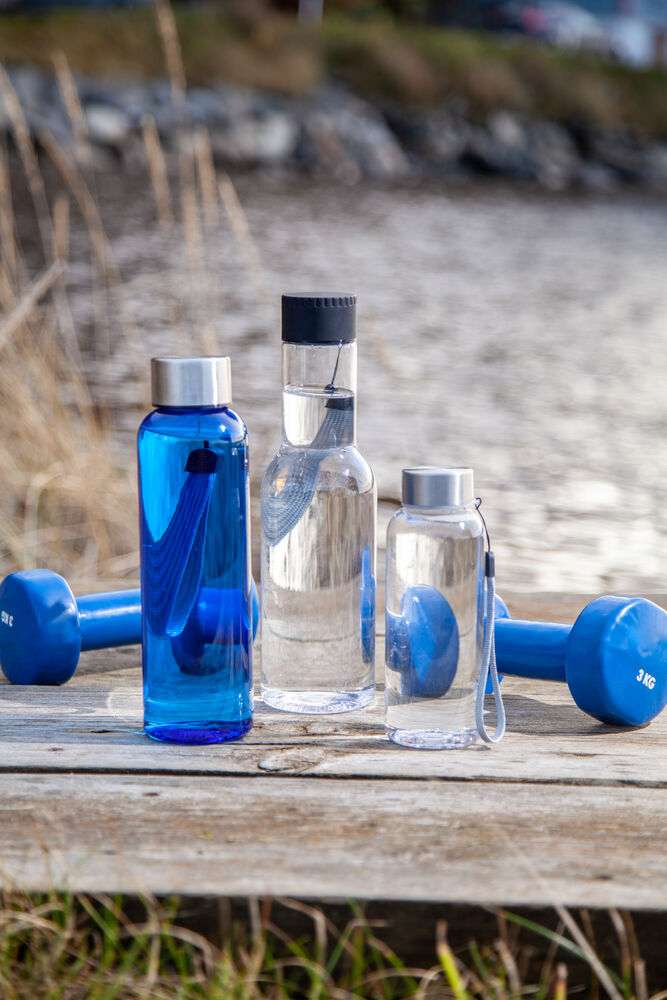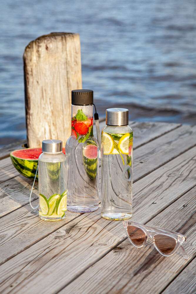 Snygg flaska i BPA-fri TRITAN-plast, lock i rostfritt stål. Tygöglan i locket gör det möjligt att hänga flaskan på en krok eller runt handleden. Ytan är skön att greppa och gör att eventuella loggor syns mycket bra.
