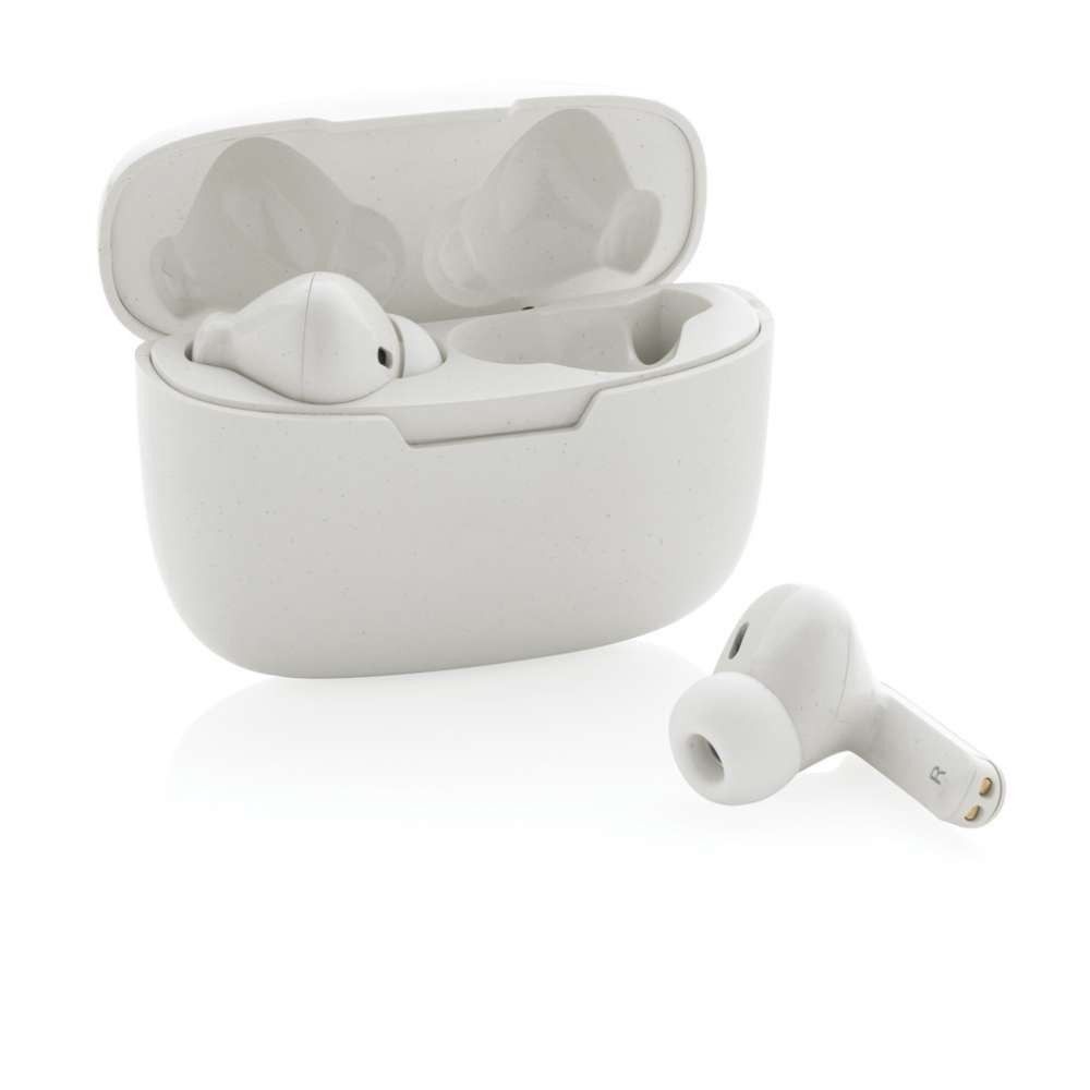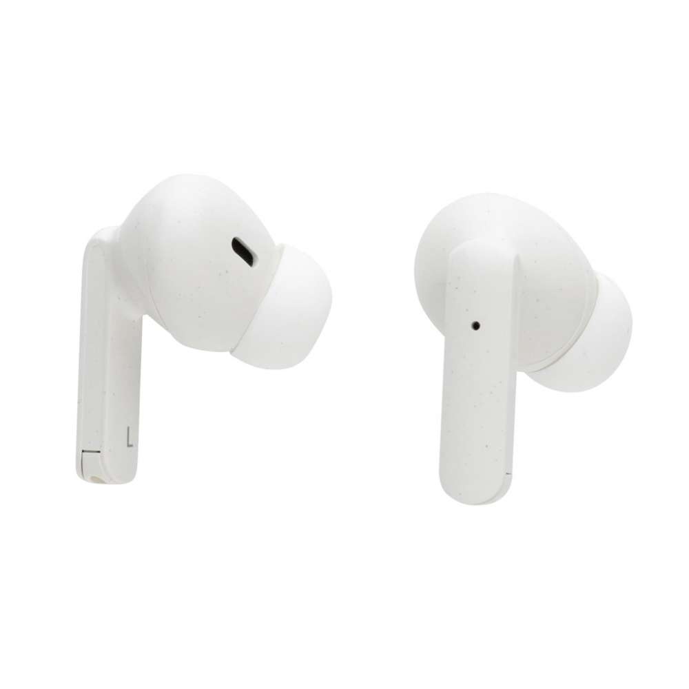Nya generationen äkta trådlösa öronsnäckor i laddningsfodral. Öronsnäckorna och laddningsfodralet är tillverkade av RCS (Recycled Claim Standard) certifierad återvunnen ABS. Totalt återvunnet innehåll: 56% baserat på total produktvikt. RCS certifiering säkerställer en helt certifierad leveranskedja av de återvunna materialen. Batteriet på 35 mAh ger en speltid på upp till 3 timmar på mediumvolym och laddas upp på 2 timme i laddningsfodralet (300 mAh). De bekväma öronsnäckorna har automatisk parkopplingsfunktion. Med BT 5.3 för smidig anslutning och en räckvidd på upp till 10 meter. Med stereofunktion och mikrofon för att besvara samtal i stereo och touchsensor för att stoppa musiken eller besvara samtal genom att bara röra vid öronsnäckan. Silikonmembran i 3 storlekar samt en laddningskabel i GRS certifierad återvunnen TPE medföljer. Levereras i FSC ® mix förpackning. Produkt och accessoarer är 100% PVC-fria.