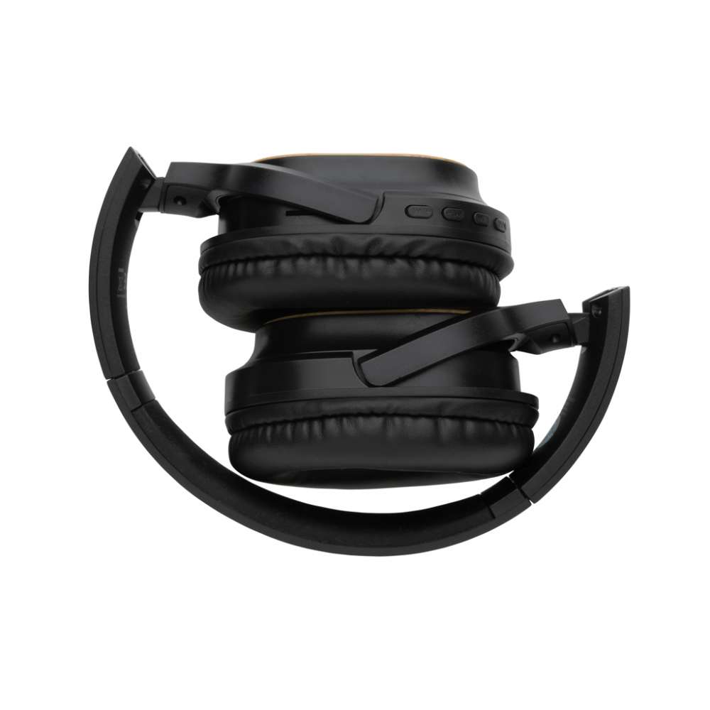 Bekväma och hållbara trådlösa hörlurar med BT 5.1 för en smidig anslutning och en räckvidd på upp till 10 meter. Tillverkad av RCS (Recycled Claim Standard) certifierade återvunna material. Med designdetalj i FSC® 100% bambu på öronkuddarna. Totalt återvunnet innehåll: 66% baserat på total produktvikt. RCS certifiering säkerställer en helt certifierad leveranskedja av de återvunna materialen. Over ear-designen ger en grym ljudupplevelse. Hopvikbar design för smidig förvaring. Det inbyggda batteriet på 200 mAh ger en speltid på upp till 5 timmar och kan laddas upp på 2 timmar. Med mikrofon för att besvara samtal. Laddningskabel i RCS certifierad TPE medföljer. Levereras i FSC® mix förpackning.