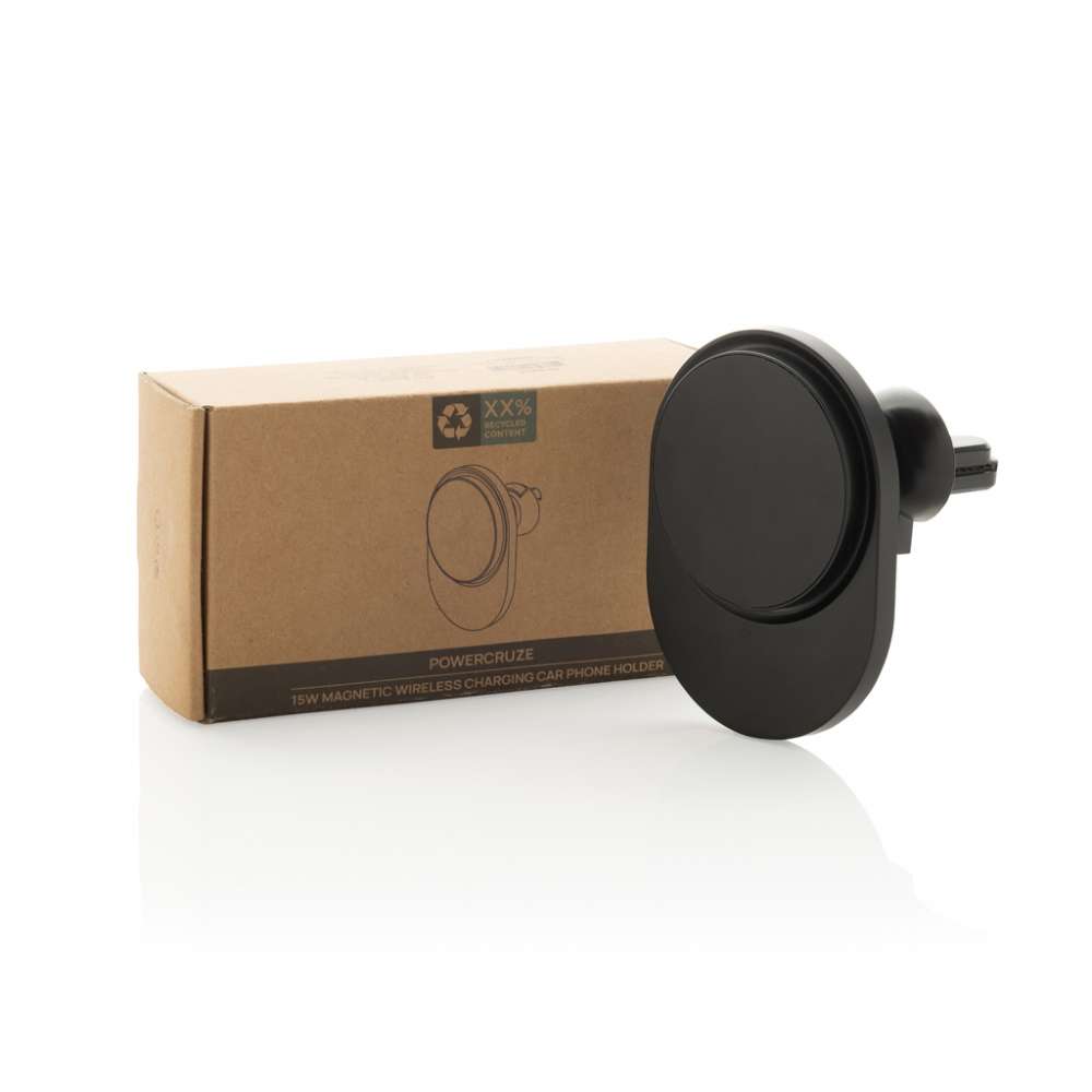 PowerCruze kombinerar ultrasnabb 15 W trådlös laddning med ett stabilt grepp: de 15 höghållfasta integrerade magneterna håller din telefon säkert på plats både i horisontellt och vertikalt läge, och med en hand kan du enkelt sätta fast och ta bort den. En integrerad LED-lampa visar laddningsstatus tydligt, medan en inbyggd kylfunktion håller optimal temperatur för säker och hållbar prestanda. Fäst PowerCruze på valfri luftventil i bilen för stabil och bekväm handsfree-körning. Tillverkad av RCS-certifierad återvunnen ABS-plast. Totalt återvunnet innehåll: 63 % baserat på produktens totala vikt. Produkten och tillbehören är PVC-fria och förpackade i FSC®-förpackningar. Laddaren inkluderar en 120 cm USB-C till USB-C-kabel tillverkad av RCS-certifierad återvunnen TPE. Ingång USB-C: 9V/2.