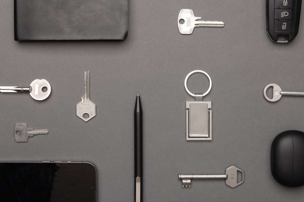 Nyckelring med telefonställ i RCS återvunnen zinklegering