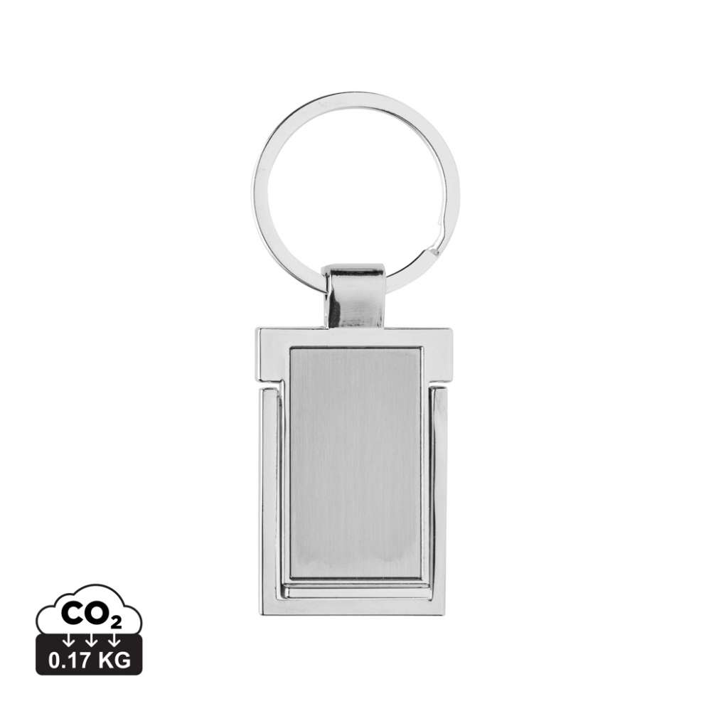 Lyxig nyckelring med telefonställ tillverkad av RCS-återvunnen zinklegering. Totalt återvunnet innehåll: 86% baserat på total produktvikt. RCS-certifiering garanterar en helt certifierad leveranskedja för de återvunna materialen. Levereras i en papperspåse.