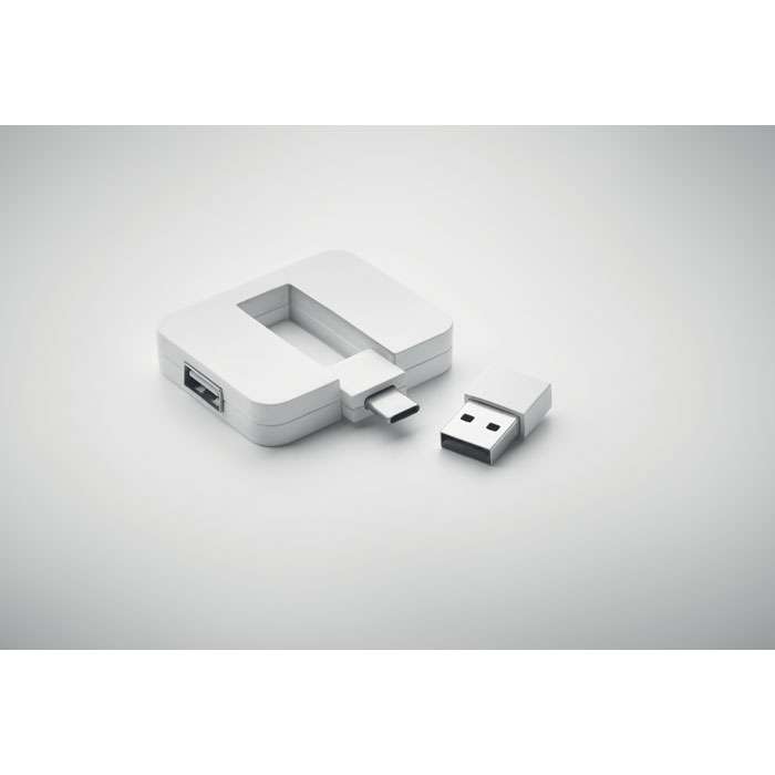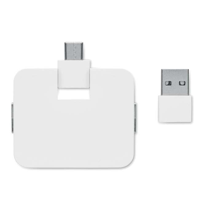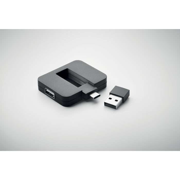 4 portar 2.0 USB i ABS. Utgång: 2 x typ-A och 2 x typ-C. Ingång: Typ-C & Typ-A. Kabellängd: 20 cm.