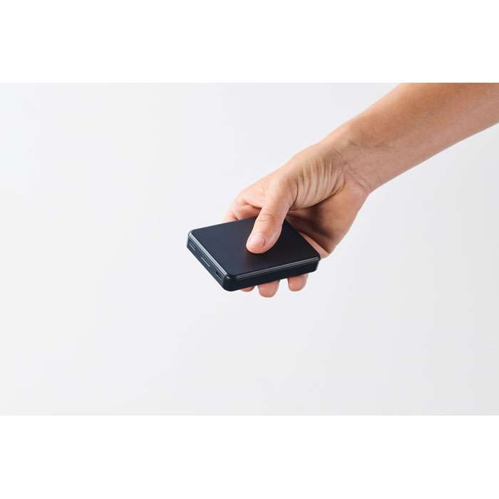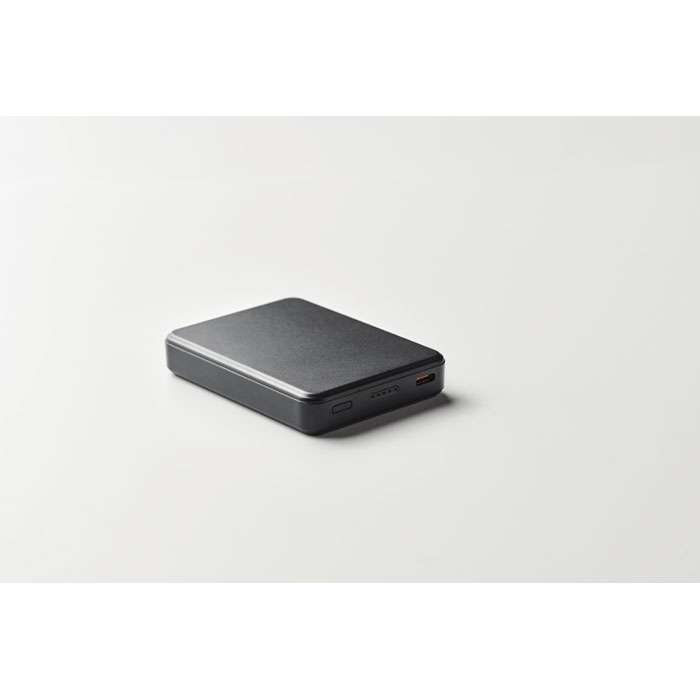 Powerbank 5000 mAh i återvunnen ABS. Utgångsström DC5V/1A och DC5V/2A. Stöder snabbladdningsteknik (20W). In/utgång: Typ-C. Strömförsörjning (PD) stöder den senaste bärbara laptop.
