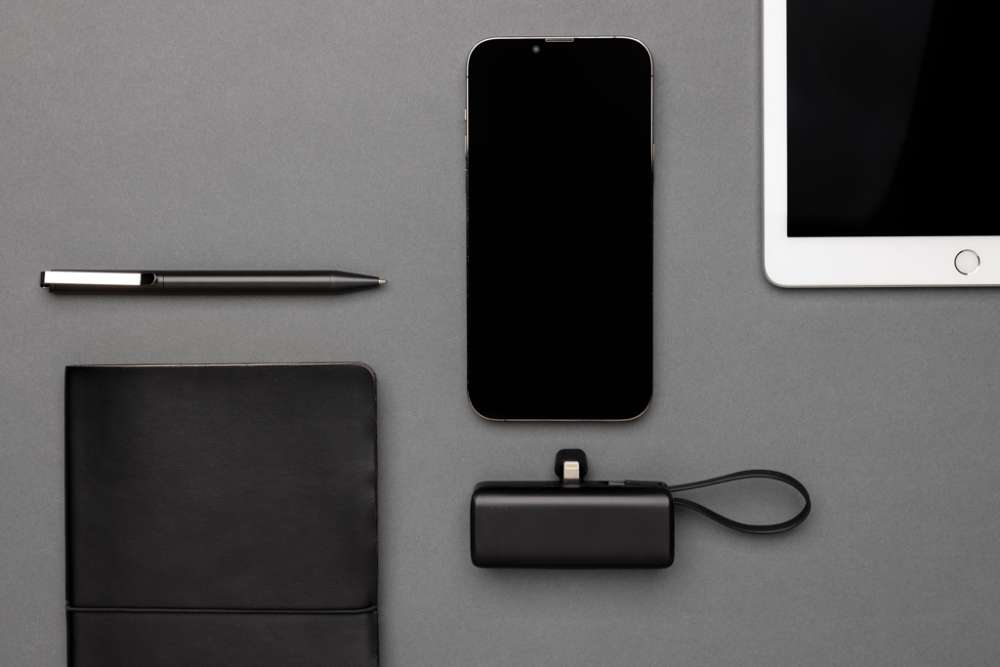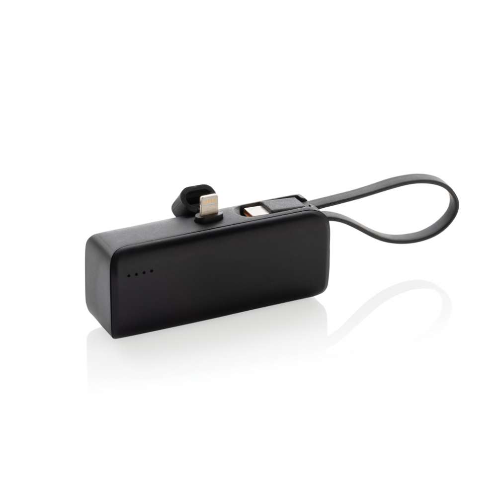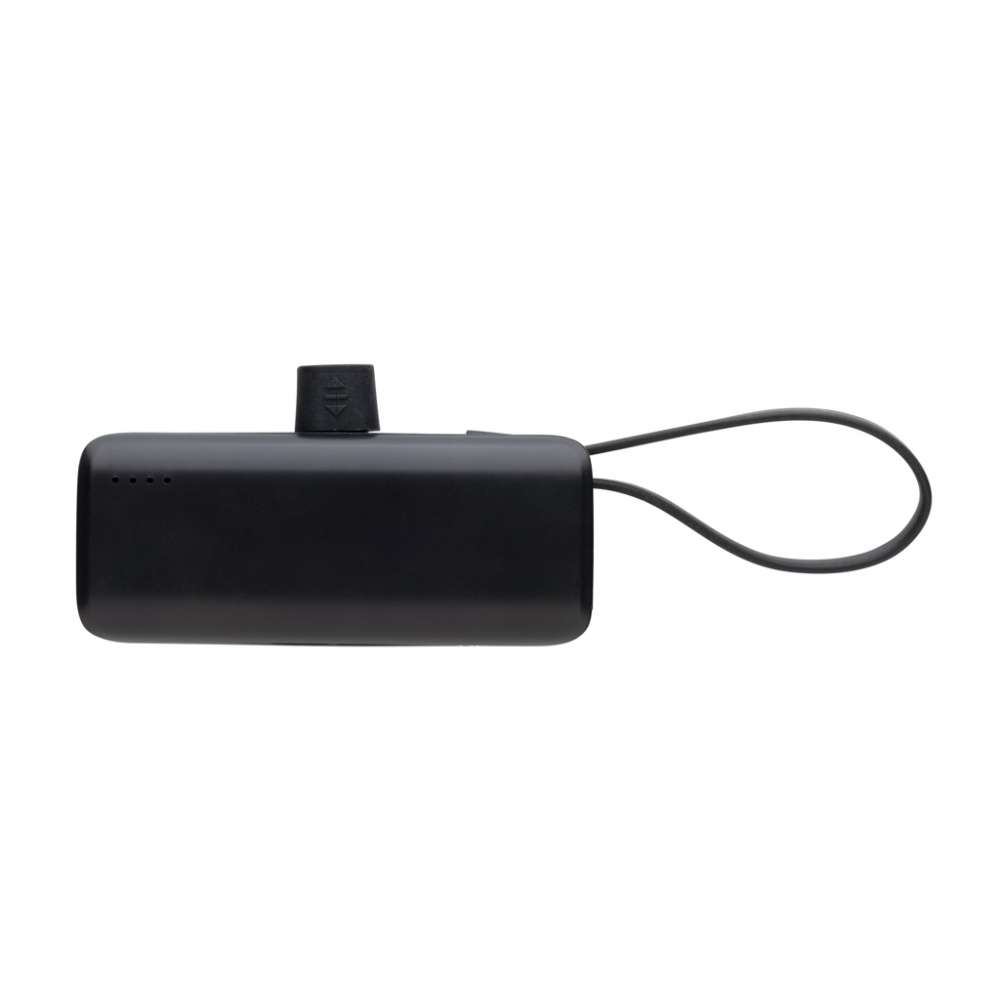 Powerbank i fickformat har en lightning-kontakt som du enkelt kan ansluta till din iPhone för att börja ladda direkt. Powerbanken på 3.000 mAh har även en integrerad USB C in- och utgångskabel som kan användas för att ladda USB C-produkter och för att ladda om powerbanken. Du behöver inte bära med dig några kablar för att använda eller ladda den här powerbanken. Tillverkad av återvunnen ABS och återvunnen TPE. Totalt återvunnet innehåll: 19% baserat på total produktvikt. RCS-certifiering garanterar en helt certifierad leveranskedja för de återvunna materialen. Levereras i FSC®-förpackning. PVC-fri. Input: 5V/2,1A Output 5V/2,4A.