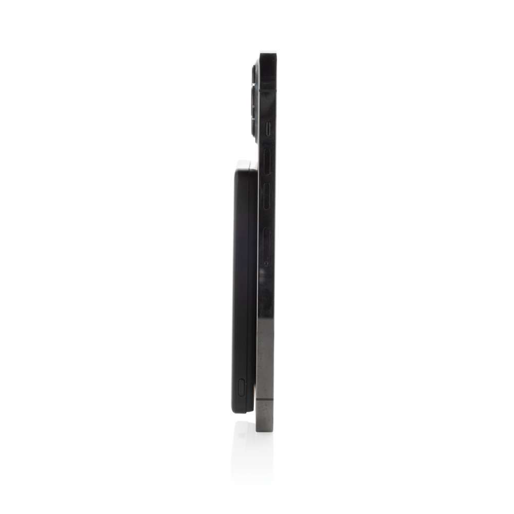 5.000 mAh ultratunn powerbank med 5W magnetisk trådlös laddare där höljet är tillverkat av RCS-certifierat återvunnet aluminium och återvunnen ABS-plast. RCS (Recycled Claim Standard) är en standard för att verifiera det återvunna innehållet i en produkt genom hela leveranskedjan. Totalt återvunnet innehåll: 23 % baserat på artikelns totala vikt. Powerbanken innehåller ett långvarigt litiumpolymerbatteri av klass A på 5.000 mAh. Strömindikatorerna visar den återstående energinivån så att du alltid vet när du ska ladda om.; Typ-C-ingång 5V/2,4A; USB C-utgång:5V/2A,4A Artikel och tillbehör PVC-fria. Inklusive RCS-certifierad laddningskabel av återvunnen TPE. Förpackad i FSC®-mixad förpackning.