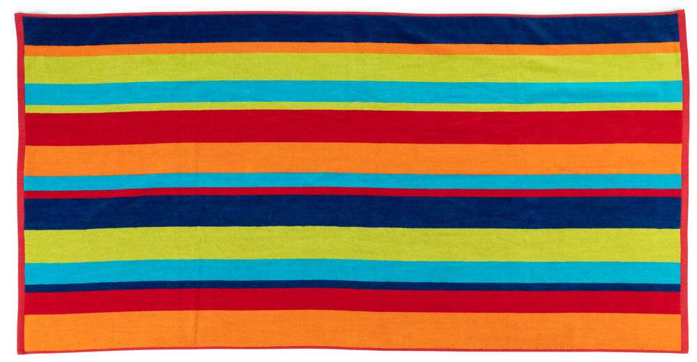Färgglatt badlakan som sticker ut på stranden och är lätt att hitta efter badet.