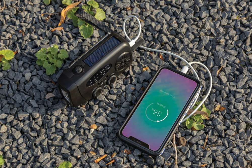 Var beredd på alla situationer med RescueWave, en mångsidig nödradio som är utformad för att hålla dig uppkopplad och strömförsörjd. Med AM/FM-radio, solpanel, en integrerad 1W-fackla, USB-utgång och USB C-ingång ser den här kompakta enheten till att du är utrustad för oväntade ögonblick. Med ett inbyggt 1800mAh-batteri kan RescueWave laddar du din telefon enklet. Handvevsmekanismen ger pålitlig funktion – bara 1 minuts vevning ger 5 minuters radio eller 30 minuters ficklampa, vilket gör den till ett viktigt verktyg i nödsituationer. När radion är fulladdad klarar den upp till 15 timmars radiosändning eller 8 timmars ficklampsljus. Tillverkad av RCS-certifierade återvunna material, inklusive återvunnen ABS-plast. RCS (Recycled Claim Standard) är en standard för att verifiera det återvunna innehållet i en produkt genom hela leveranskedjan. Totalt återvunnet innehåll: 38% baserat på artikelns totala vikt. Artikel och tillbehör är PVC-fria och förpackade i FSC®-förpackningar.