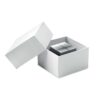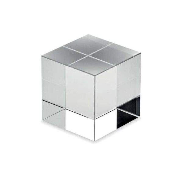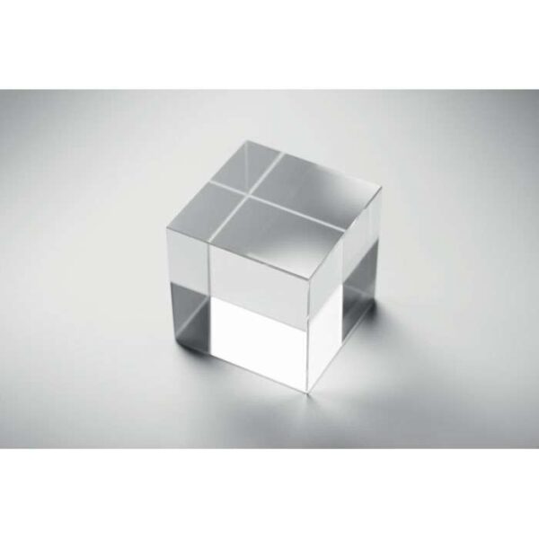 Pris eller trofé i form av en glaskub. Presenteras i en presentförpackning.