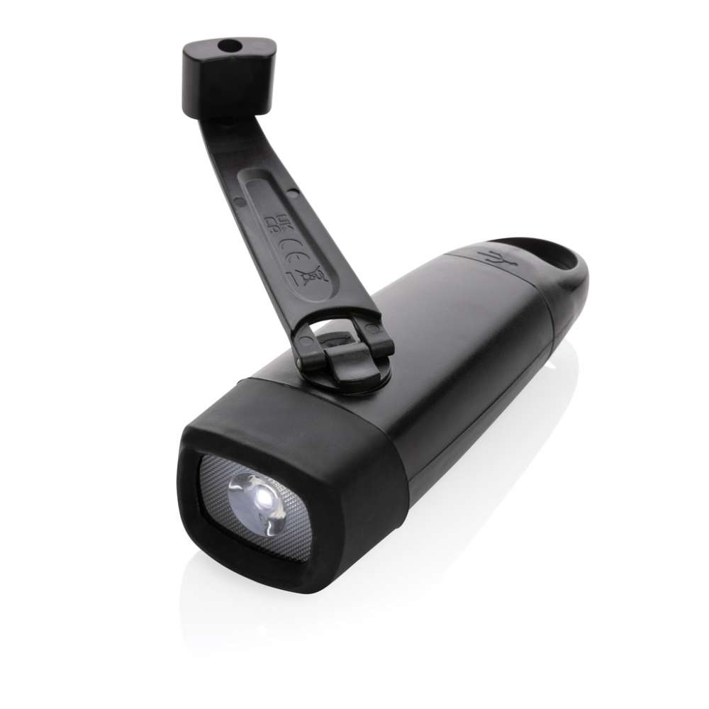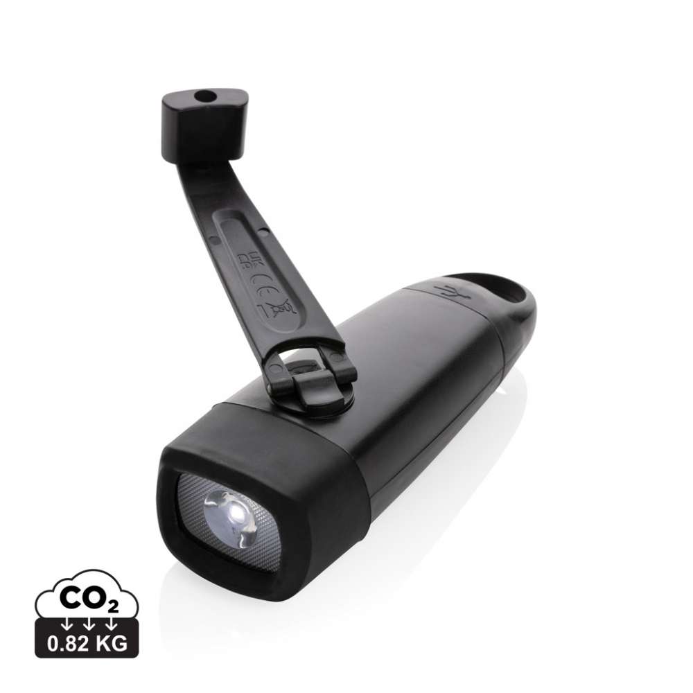 Vevficklampa med extra starkt ljus tillverkad av RCS-certifierad återvunnen ABS-plast. Totalt återvunnet innehåll: 30% baserat på total produktvikt. RCS-certifieringen säkerställer en helt certifierad leveranskedja för det återvunna materialet. Ficklampan använder ett uppladdningsbart 620 mah litiumbatteri av A-klass, så du behöver inte byta batterier. Ladda via ditt USB-uttag. 120 lumen LED-ljus. Med type C-port för laddning. Drifttid på en laddning: 2 timmar. Veven kan användas för att tillföra energi i nödsituationer.