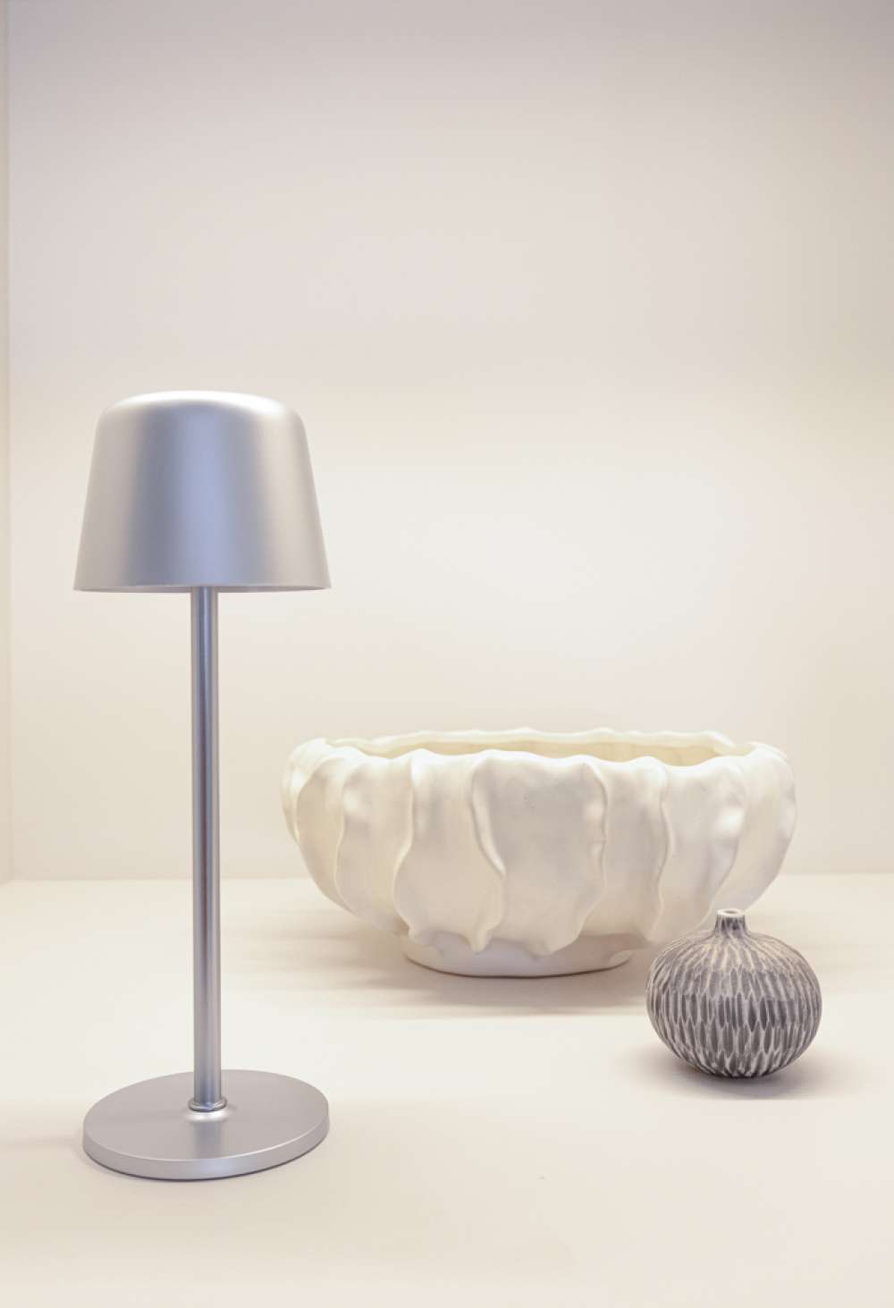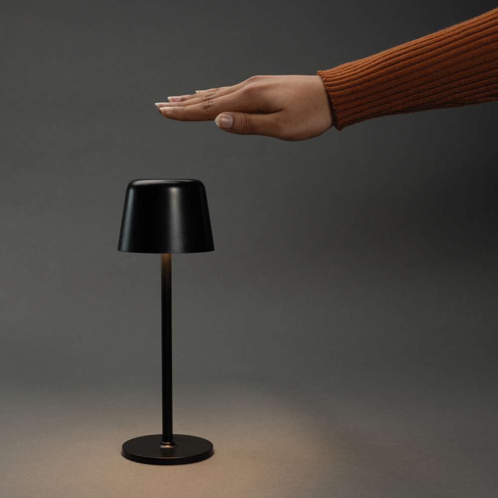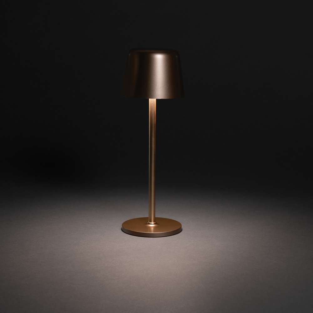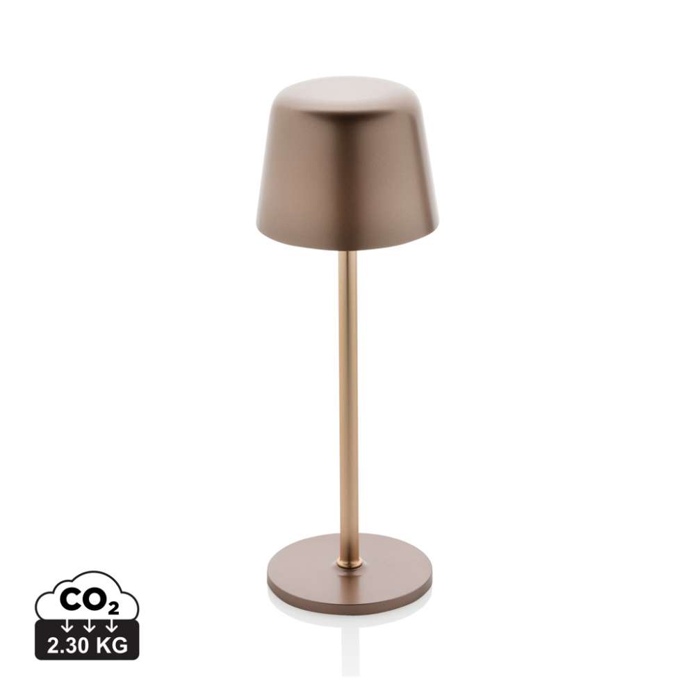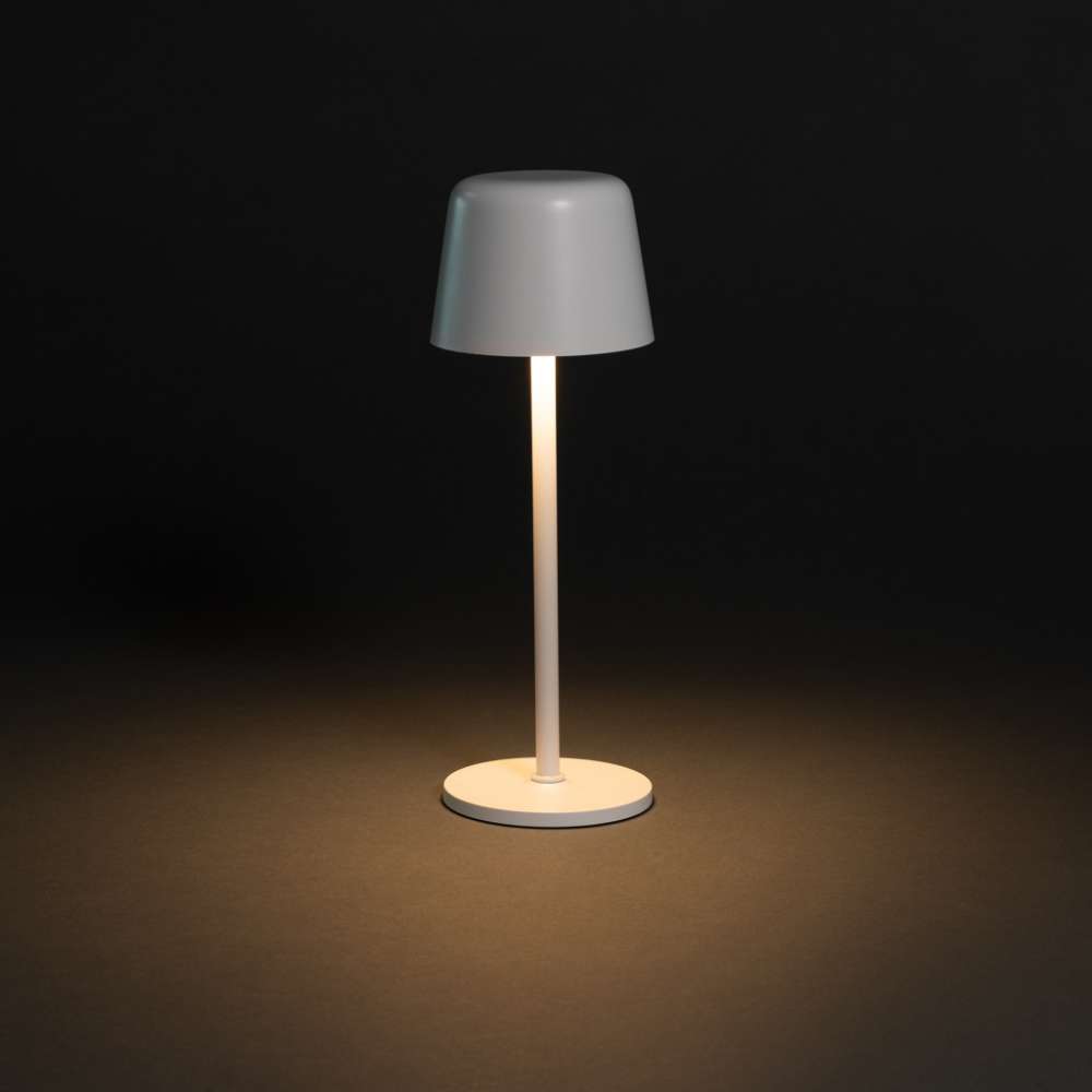 Trendig uppladdningsbar och portabel bordslampa som passar både på skrivbordet och i vardagsrummet. Tillverkad av RCS-certifierad återvunnen ABS och metallstång. Totalt återvunnet innehåll: 51% baserat på artikelns totala vikt. RCS-certifieringen säkerställer en helt certifierad leveranskedja för de återvunna materialen. Bordslampan fungerar i upp till 8 timmar på en enda laddning och kan laddas om på 3 timmar.med integrerat 1200 mah A-klassat batteri, med tre lägen (varmt ljus, vitt ljus och neutralt) som kan justeras genom att röra vid lampans ovansida. Laddningsbar via USB-C inklusive 80 cm återvunnen TPE-laddningskabel. Förpackad i FSC®-mixad förpackning. PVC-fri.