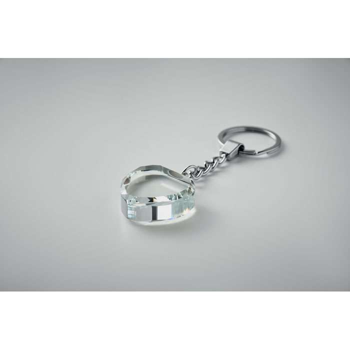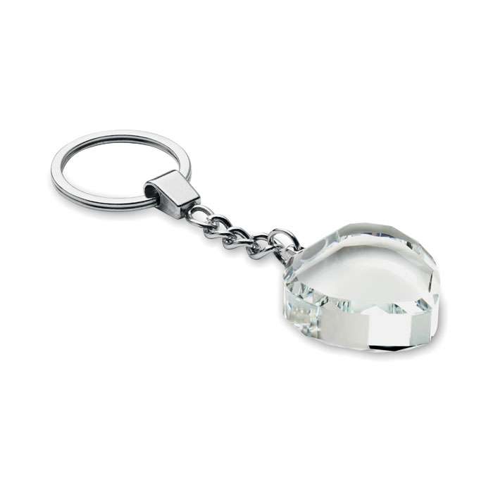 Nyckelring med hjärta i glas. Levereras i en presentförpackning.