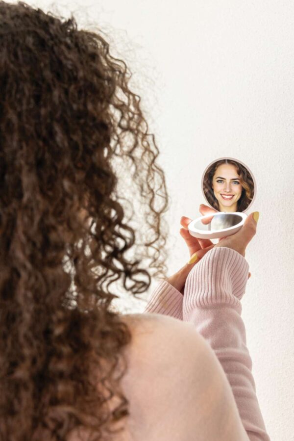 Lumora är en elegant fick spegel med integrerad LED-belysning, utformad för att ge optimal belysning för din skönhetsrutin. Det justerbara ljusläget gör att du kan anpassa ljusstyrkan efter dina önskemål, vilket garanterar perfekt belysning för sminkning eller touch-ups. Lumora är utrustad med en förstoringsspegel som möjliggör detaljerad precision. Spegeln har ett uppladdningsbart batteri på 300 mAh som enkelt laddas via USB-C för bekvämlighet och tillförlitlighet. Kompakt men kraftfull, kombinerar den bärbarhet med premiumfunktionalitet. Tillverkad av RCS-certifierade återvunna material, inklusive återvunnen plast. RCS (Recycled Claim Standard) är en standard för att verifiera återvunnet innehåll i en produkt genom hela leveranskedjan. Totalt återvunnet innehåll: 46 % baserat på produktens totala vikt. Produkten och tillbehören är PVC-fria och förpackade i FSC®-förpackningar.