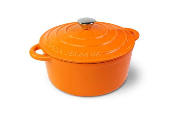 En rejäl emaljerad gjutjärnsgryta som rymmer allt du behöver för en riktig festmåltid.