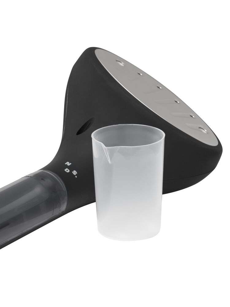 Denna steamer är ett effektivt och stilrent verktyg för att snabbt fräscha upp dina plagg. Den mattsvarta finishen i plast och metall gör den både tålig och snygg – en vardagshjälte i hemmet eller på resan.