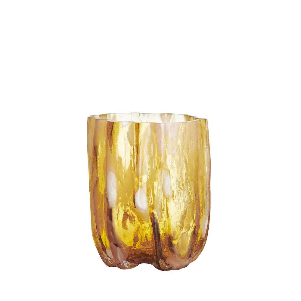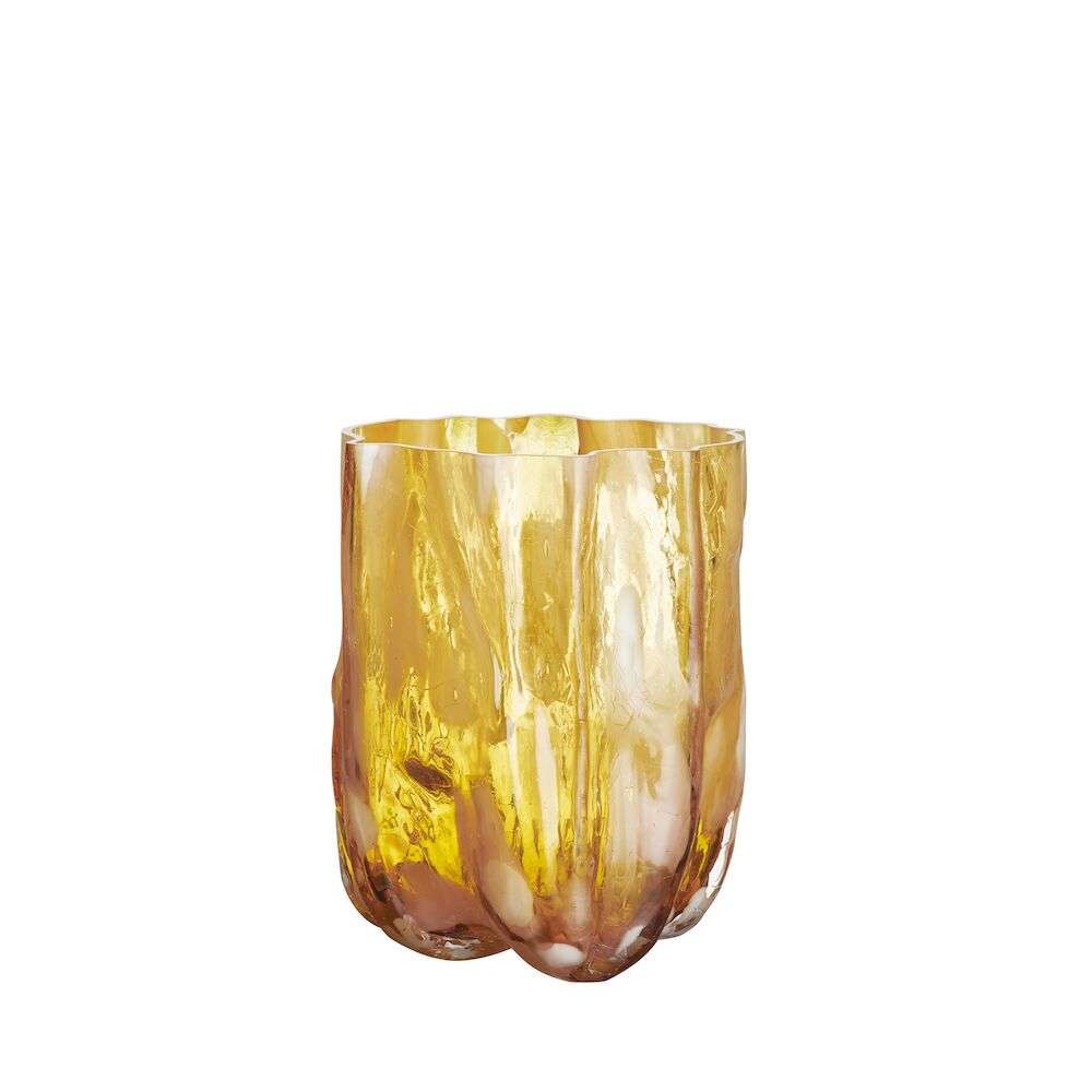 Serien Crackle är en hyllning till sprickor, vackert bevarade i glas. Vasen i bärnstensaktig tappfärg och rosa kross har ett skulpturalt och uttrycksfullt yttre som skapas med en gammal hantverksteknik, där det varma glaset doppas i iskallt vatten. Crackle är munblåst i Kosta och designad av Åsa Jungnelius.
