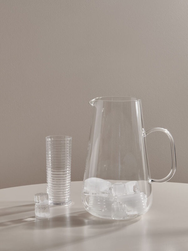 Viva från Kosta Boda är en mångsidig produktserie för varma och kalla drycker inklusive ett brett sortiment av dryckestillbehör, alla som gjorda för att föra människor samman. Karaffen är ett dekorativt komplement till din favoritdryck och är ett perfekt komplement till övriga delar i serien. Designad av Matti Klenell.