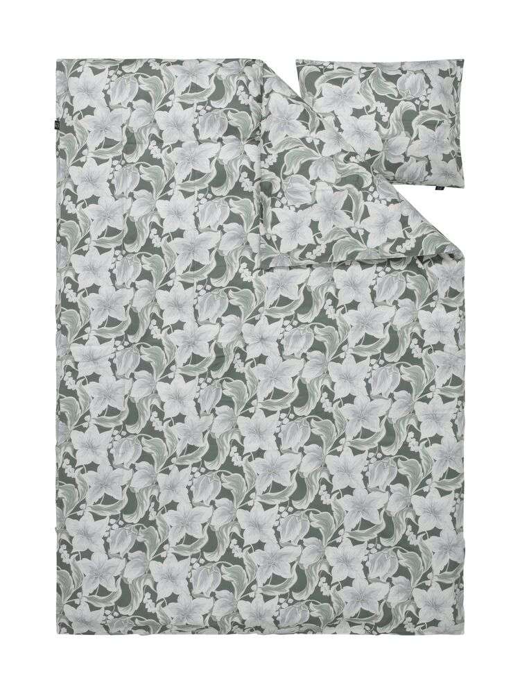 Bäddset med storblommigt mönster på mjuka gråtoner perfekta för sovrummet. Gjort av bomullssatin som ger en lyxig känsla mot huden.