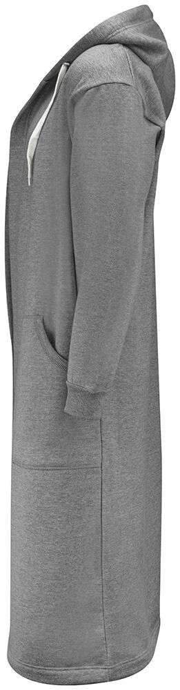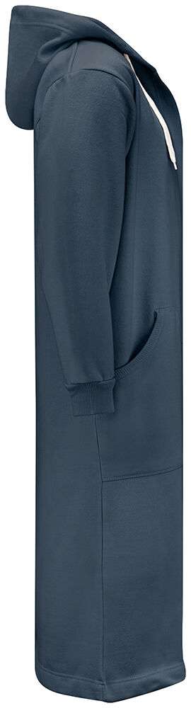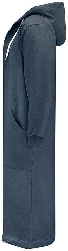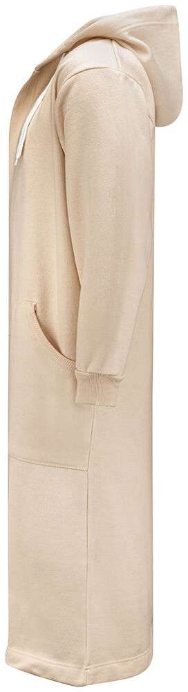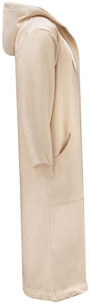 Den har två fickor och mudd i ärmarna. Huvband och skärp i midjan.