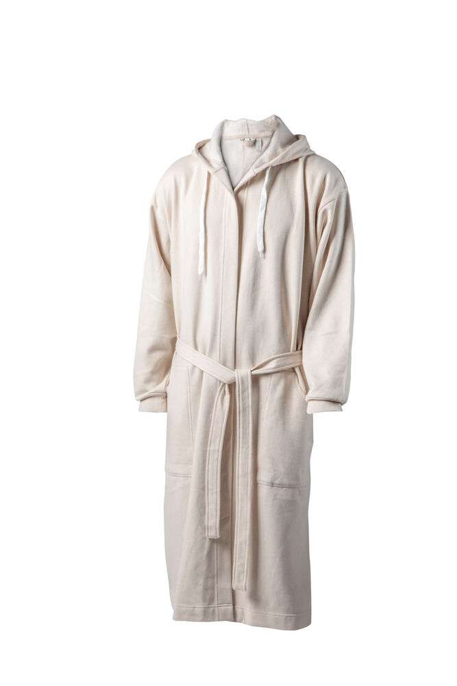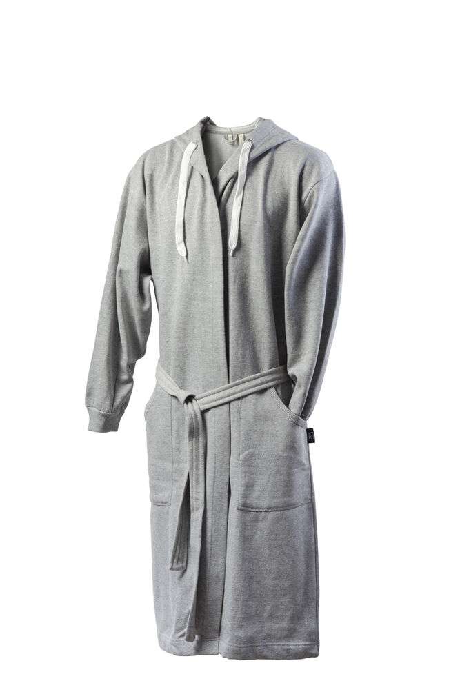En helt unik variant av bad/morgonrock! Detta är en underbar hybridrock i collegetyg. Den passar lika bra att bära efter träning, bad eller bara till att mysa i.