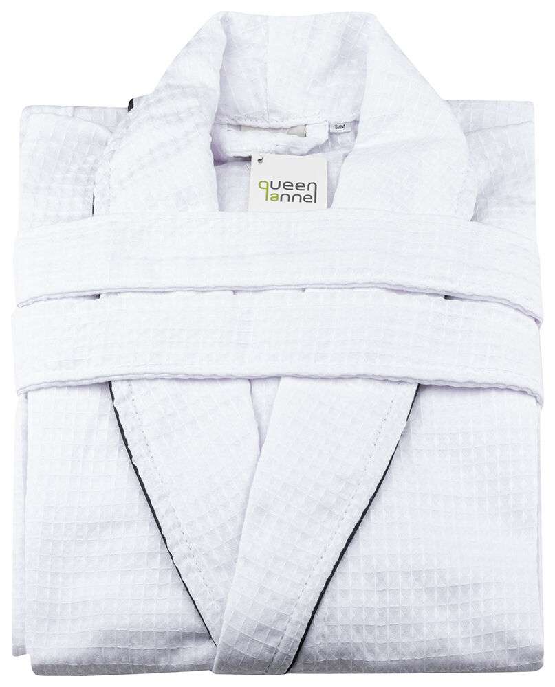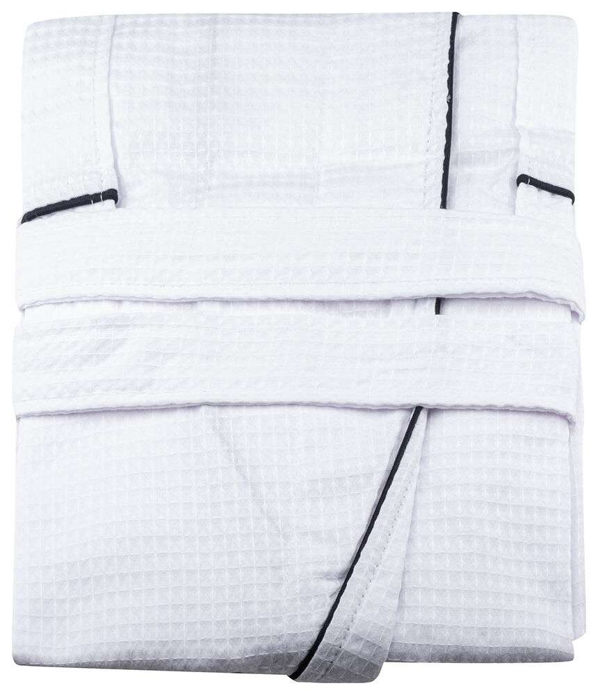 En lyxigt designad, våfflad, sparock. Perfekt att svepa om dig efter ett dopp i bubbelpoolen. Tar lite plats och är lätt att hantera. Den torkar snabbt.