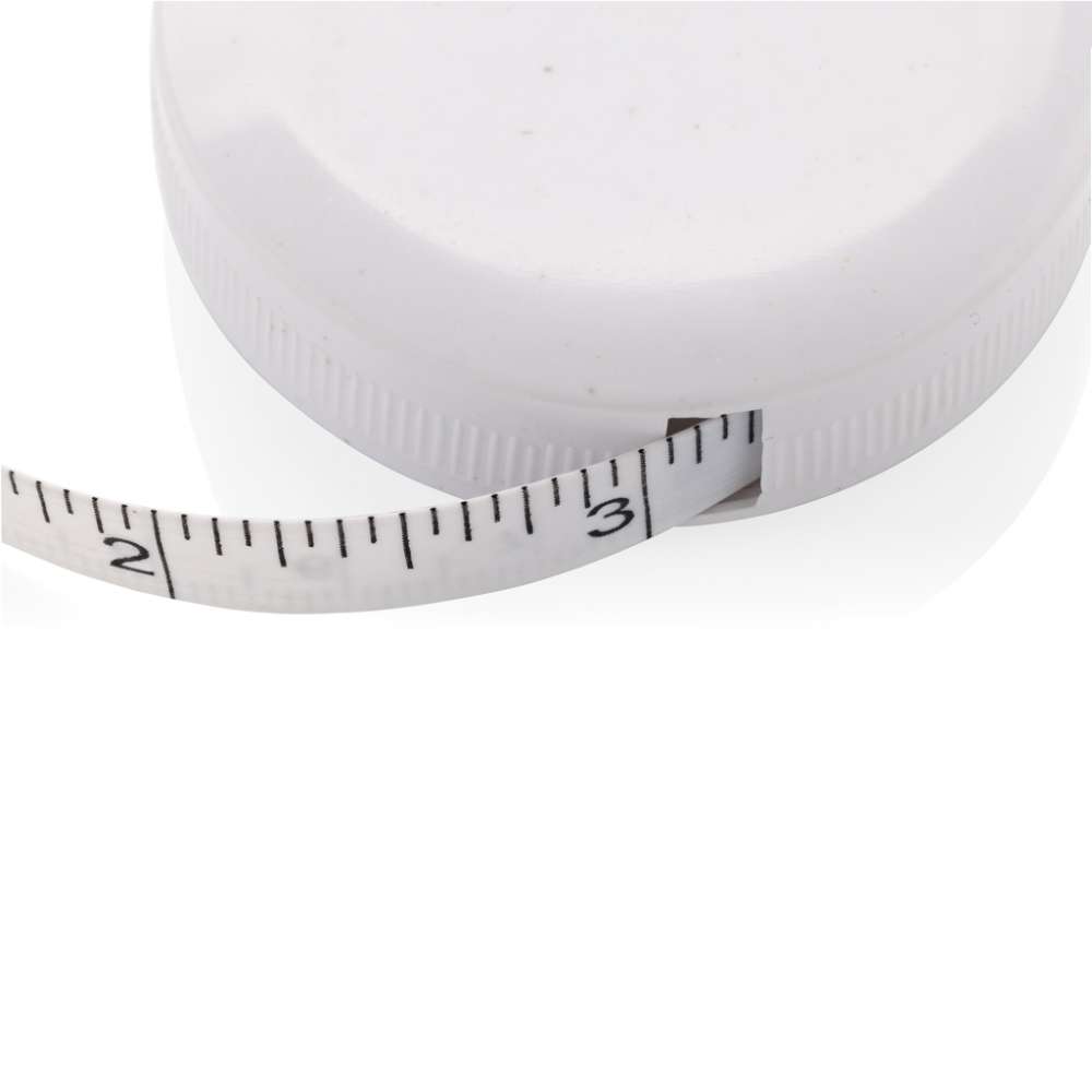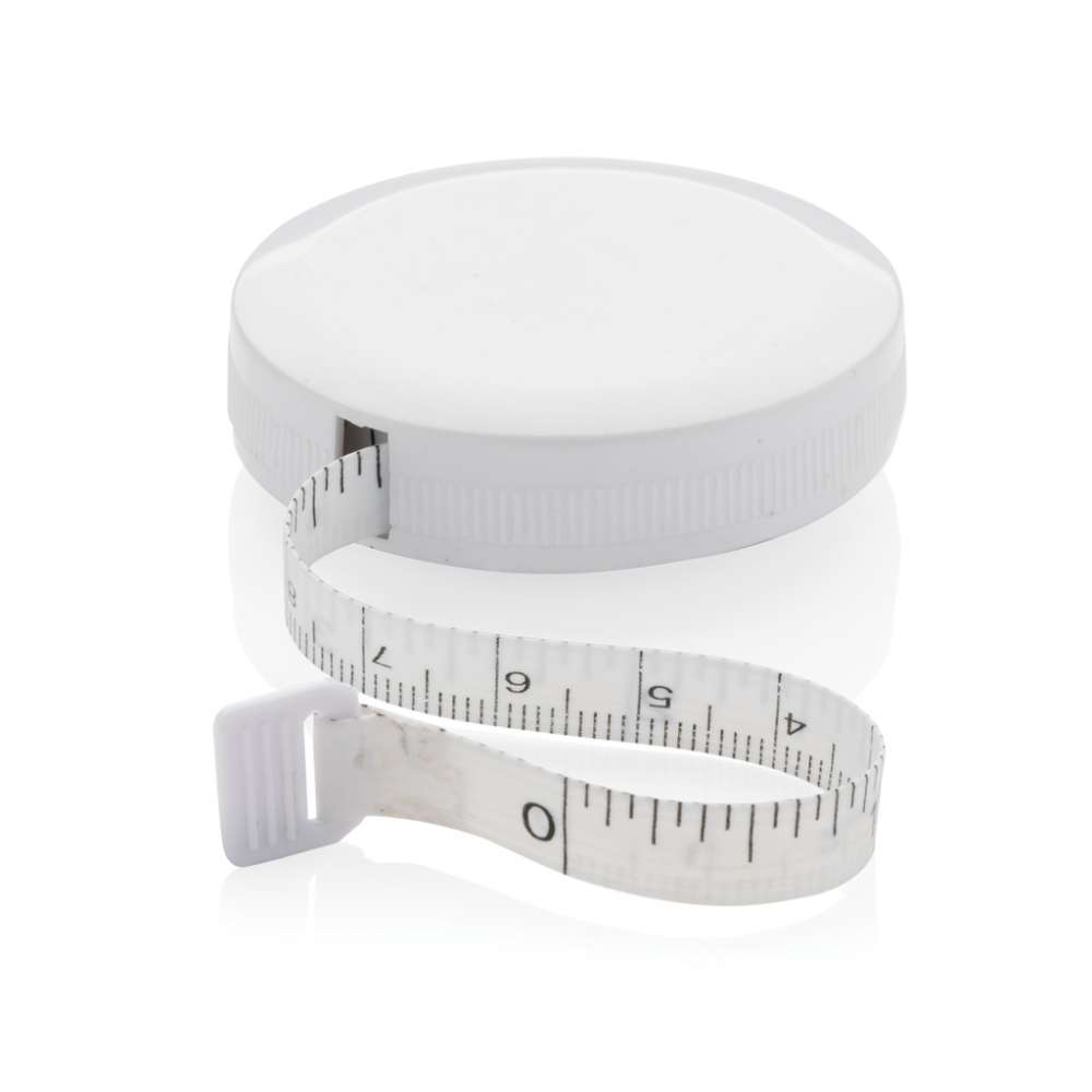 1,5m/60tum måttband i återvunnen plast med returtryckknapp, för fitness och mode. Höljet är tillverkat av RCS-certifierad återvunnen ABS-plast och glasfiber. Totalt återvunnet innehåll: 64% baserat på total produktvikt. RCS-certifiering garanterar en helt certifierad leveranskedja för de återvunna materialen. Bandet är 8mm brett och kan dras in med hjälp av en knapp. Levereras i FSC®-mixförpackning.
