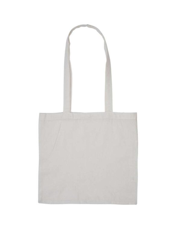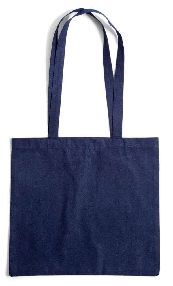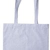 Denna kasse är vävd av återvunna bomullstrådar och har fått lite extra polyestertrådar tillagda då fibrerna i återvunnen bomull är svagare, på detta sätt får du en slitstark kasse.