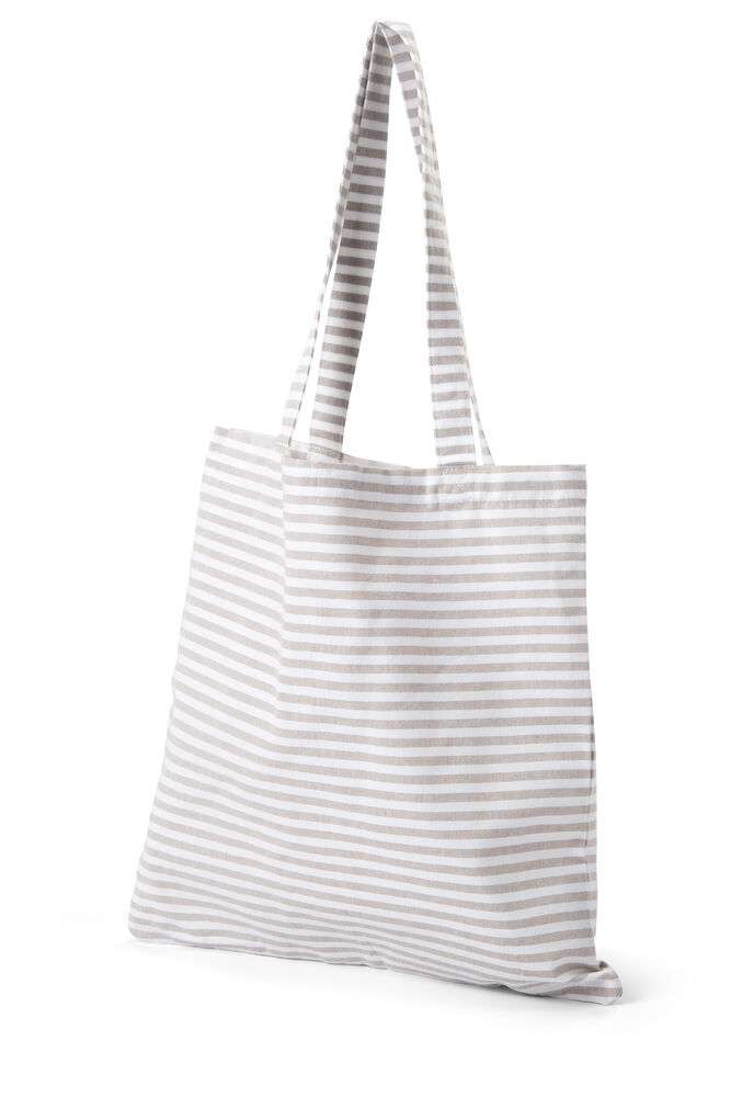 Lätt tygpåse med plats för badlakan, badkläder och annat du vill ha med dig till stranden. Tygpåsens handtag är anpassat för att hänga på axeln men fungerar lika bra att hålla bara i handen. Tåligt tyg av bomull och lätt att tvätta.