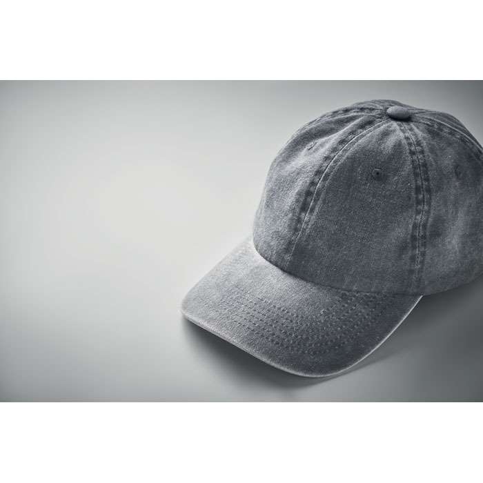 Vintage 6 panel baseball keps i tvättad bomull. 265 gr/m² med justerbar kardborreknäppning. 6 st sydda öljetter i matchande färg. Storlek 7 1/4 – 58cm.