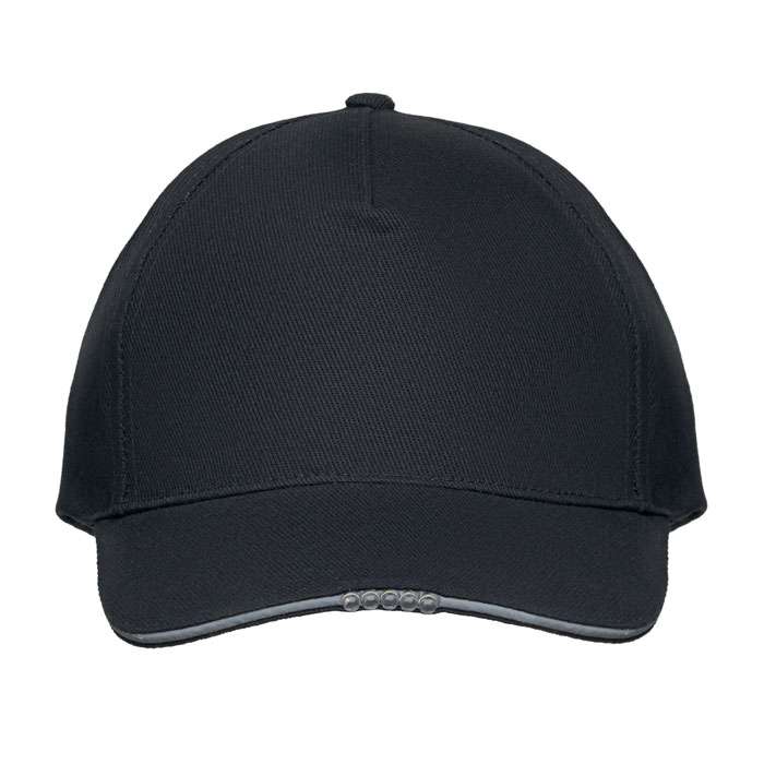 Keps med 5 paneler i 220 gr/m² bomull med metallspänne. 5 LED lampa i skärm inklusive 1 USB-laddningskabel.