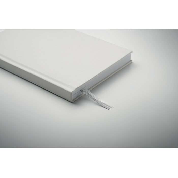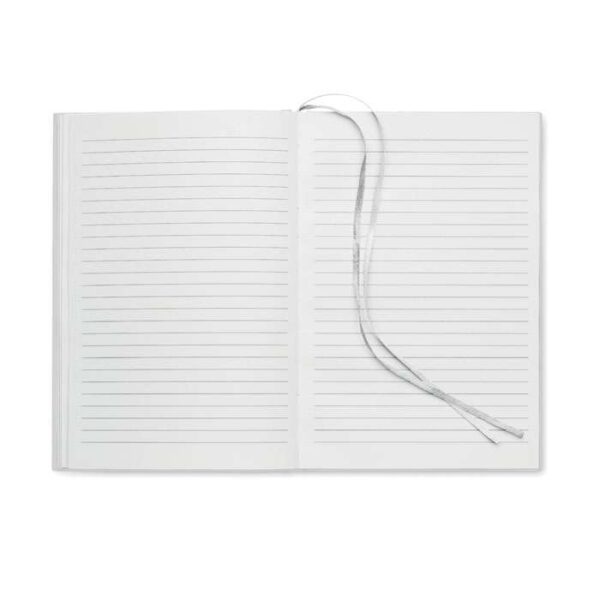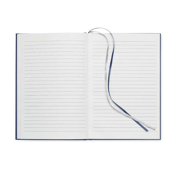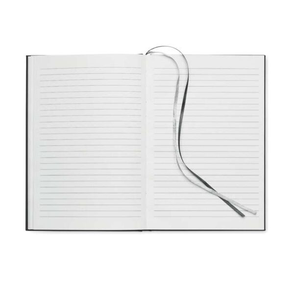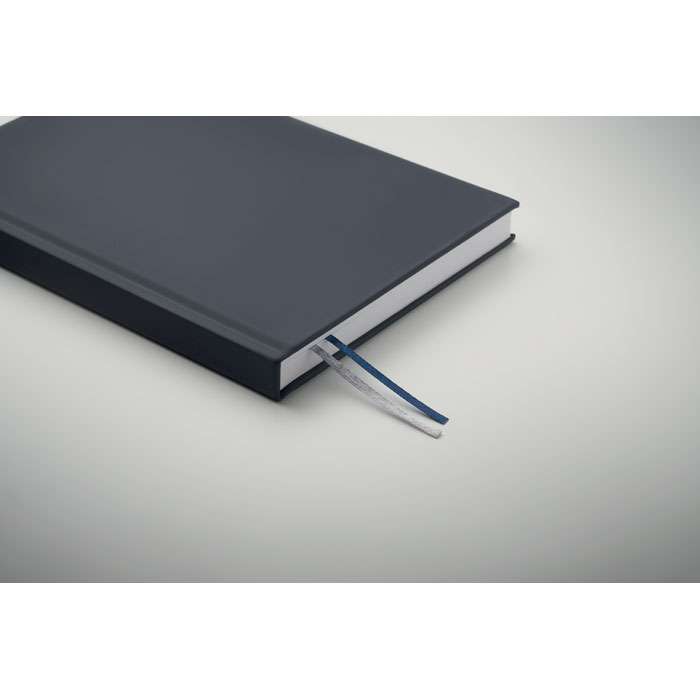 A5 anteckningsbok i 60% återvunnen polyester och 40% PU-omslag. Inbunden, 256 linjerade sidor i 70 gsm återvunnet papper (128 ark). Med 2 sidmarkeringar i polyesterband.