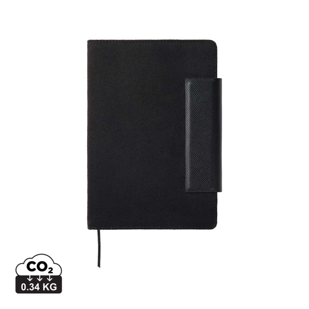 En stilfull anteckningsbok i A5-format bestående av 160 linjerade sidor (80 ark). Den perfekta accessoaren som ser till att du håller dina anteckningar organiserade med stil på mötet. Marlow anteckningsbok kombinerar tidlös design med återvunnen mockaimitation, PU-detaljer samt återvunnet papper. Anteckningsboken är försedd med en praktisk och stilfull magnetstängning. Certifierad enligt GRS (Global recycled standard), GRS-certifieringen garanterar att hela leveranskedjan för återvunna material är certifierad. Det totala återvunna innehållet baseras på produktens totala vikt. Denna produkt innehåller 50% GRS certifierat återvunnet papper och 6% GRS certifierad återvunnen polyester.