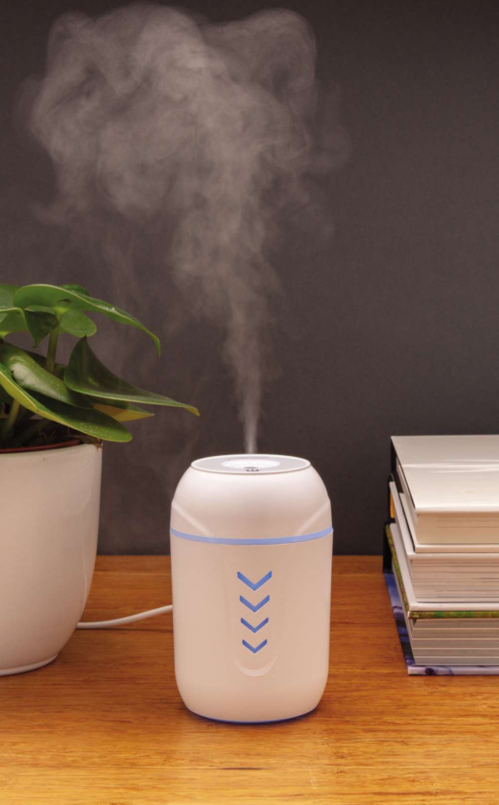 Luftfuktare i hållbar ABS med integrerat invändigt UV-C ljus. Luftfuktaren producerar ånga för att skapa en optimal luftkvalitet. På vintern ser den till att luften blir mindre torr och på sommaren har den en avkylande effekt. Munstycket producerar väldigt lite ljud så den kan även användas nattetid. Det integrerade UV-ljuset dödar upp till 99,9% av potentiellt skadliga bakterier i vattnet innan det sprayas. 2 extra bomullsstickor medföljer för att ersätta originalet. En bomullssticka kan användas upp till 8 månader innan den behöver bytas ut. Innehåll: 200 ml som behöver fyllas på efter 4 timmars användning. UV-C våglängd 270nm-280nm. UV-C ljuset aktiveras endast när produkten är stängd. 120 cm PVC-fri TPE-kabel medföljer.