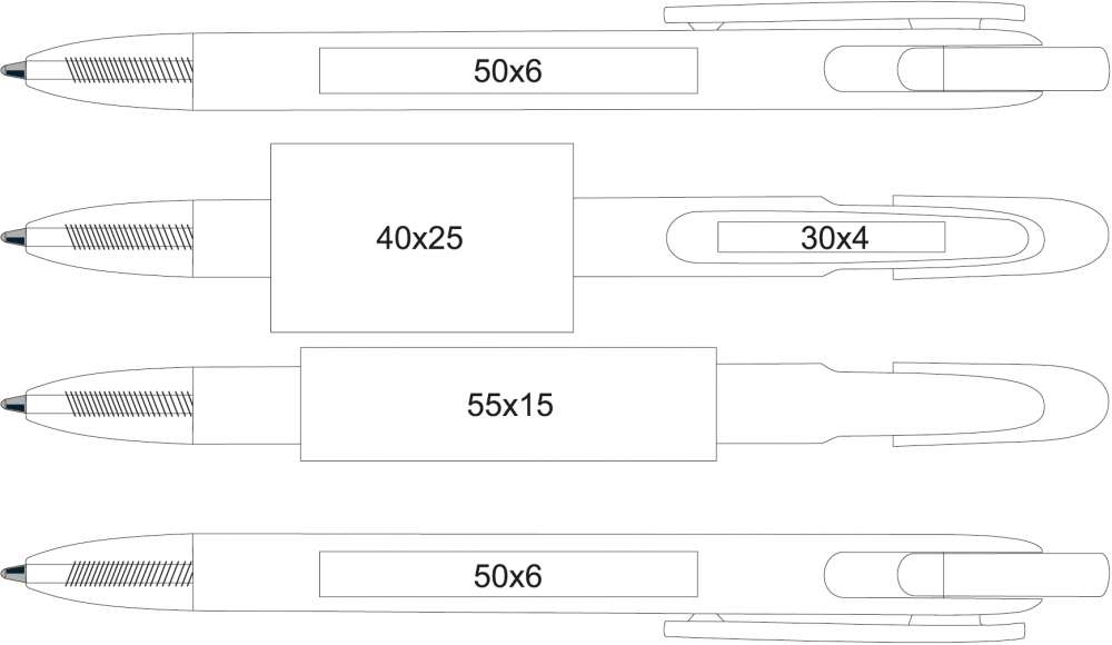Pennorna kommer med en förtryckt recycle-symbol på motsatt sida av klips.