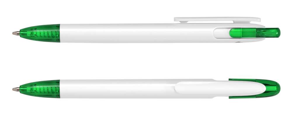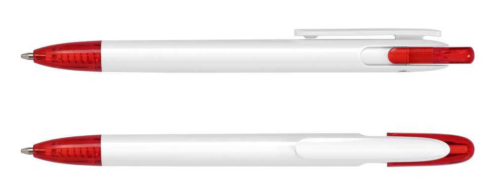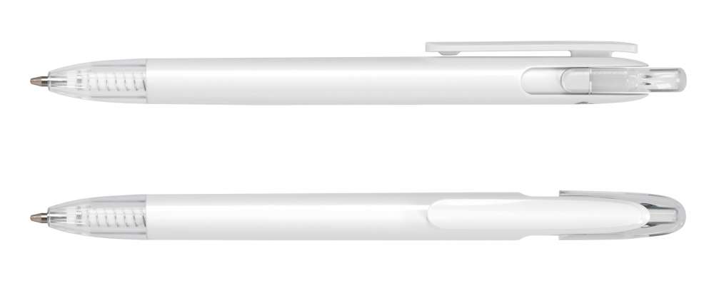Ditt val gör skillnad! Plastpenna tillverkad i GRS-certifierade återvunna material. Pennkropp i RABS och tryckknapp och spets i RPC. Unik och modern design. Den platta tryckknappen löper längs med pennan i ett spår i pennkroppen. Pennans genomgående runda former och den annorlunda tryckknappen ger pennan sitt karaktäristiska utseende. Swan White har en vit solid pennkropp och finns i fem olika transparenta färgval på spets och tryckknapp. I pennan sitter det en refill av standardtyp med ett blått Europeiskt bläck. Pennorna kommer med en förtryckt recycle-symbol på motsatt sida av klips.