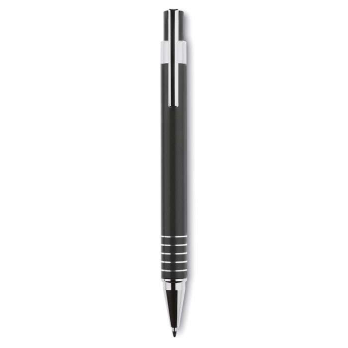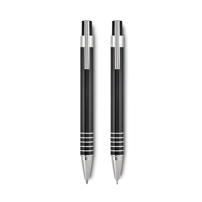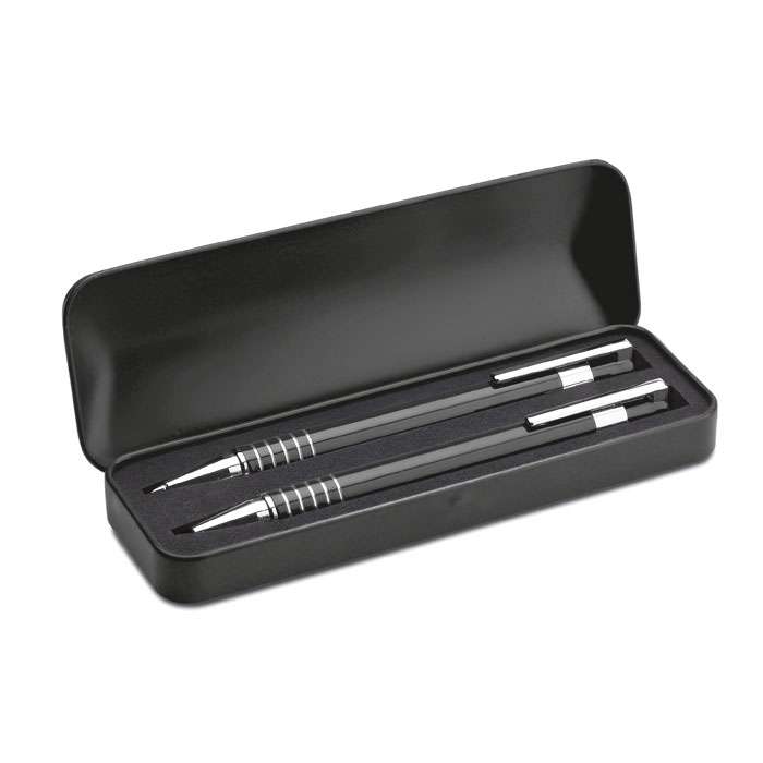 Aluminium set. Kulspetspenna med blått bläck och en mekanisk blyertspenna i matchande metallfodral.