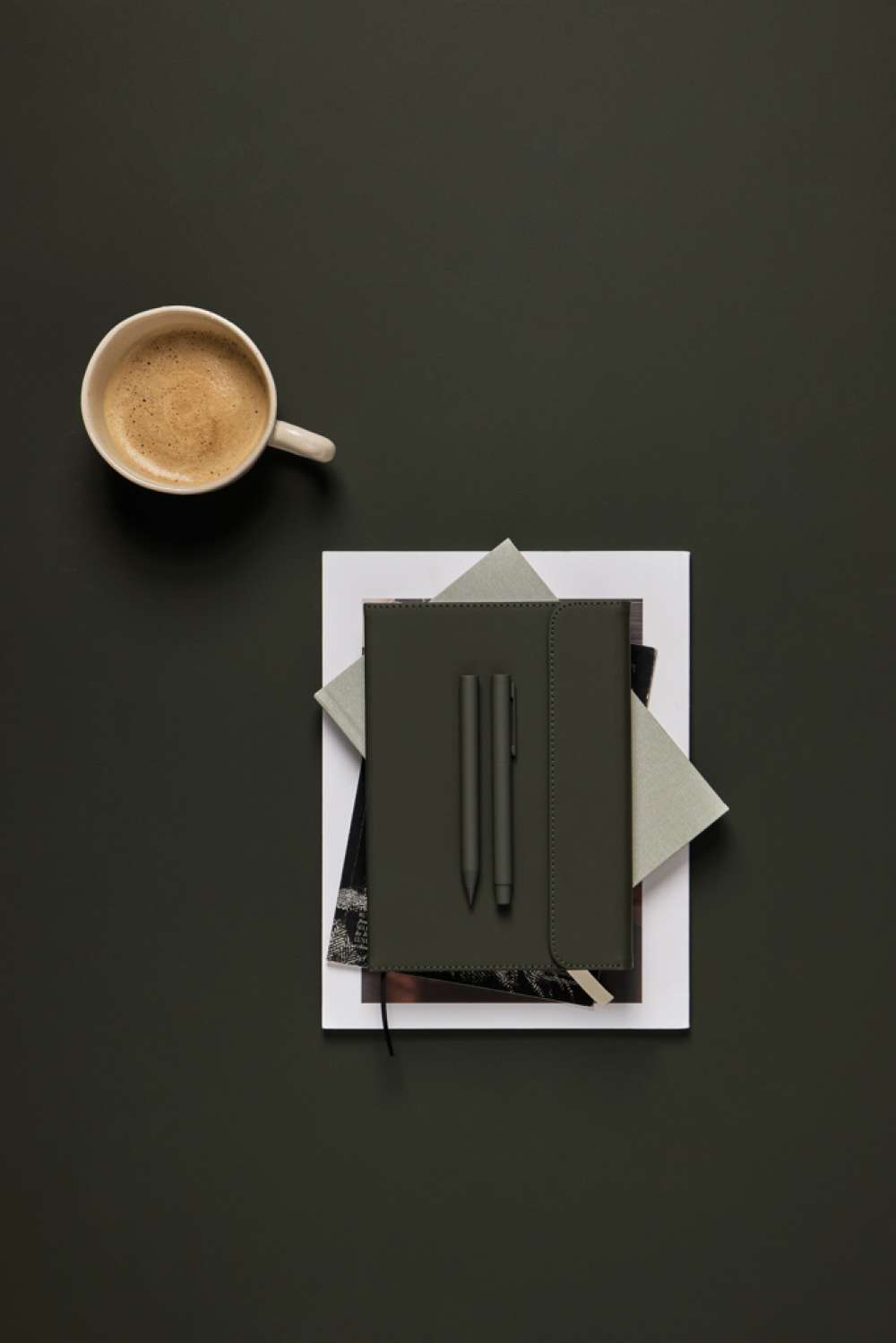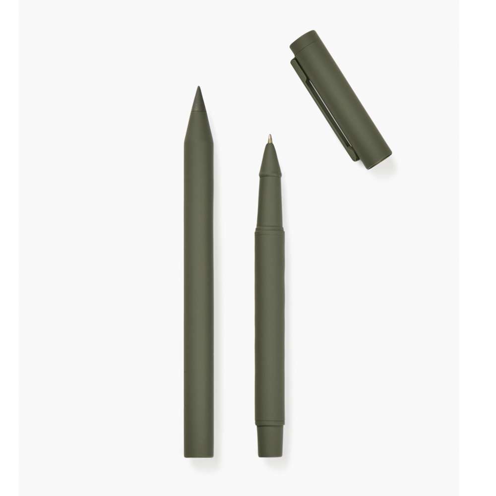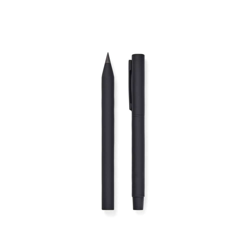 Detta moderna och stilrena set innehåller två pennor: en evighetspenna och en klassisk kulspetspenna med lock och klämma. Båda pennorna är designade med stil och funktionalitet i åtanke, tillverkade av RCS-certifierat återvunnet rostfritt stål och försedda med en gummiyta för ett bekvämt grepp och en matt finish. Med en balanserad vikt ligger de skönt i handen och gör skrivandet bekvämt och stabilt. Evighetspennan erbjuder obegränsat skrivande, medan kulspetspennan har en spets på 1,00 mm och ger en jämn och konsekvent skrift med dokumentblått bläck som räcker upp till 1200 meter. Certifierad enligt RCS (Recycled Claim Standard), RCS-certifieringen garanterar att hela leveranskedjan av återvunna material är certifierad. Det totala återvunna innehållet baseras på produktens totala vikt. Denna produkt innehåller 52 % RCS-certifierat återvunnet aluminium och 10 % RCS-certifierat rostfritt stål.