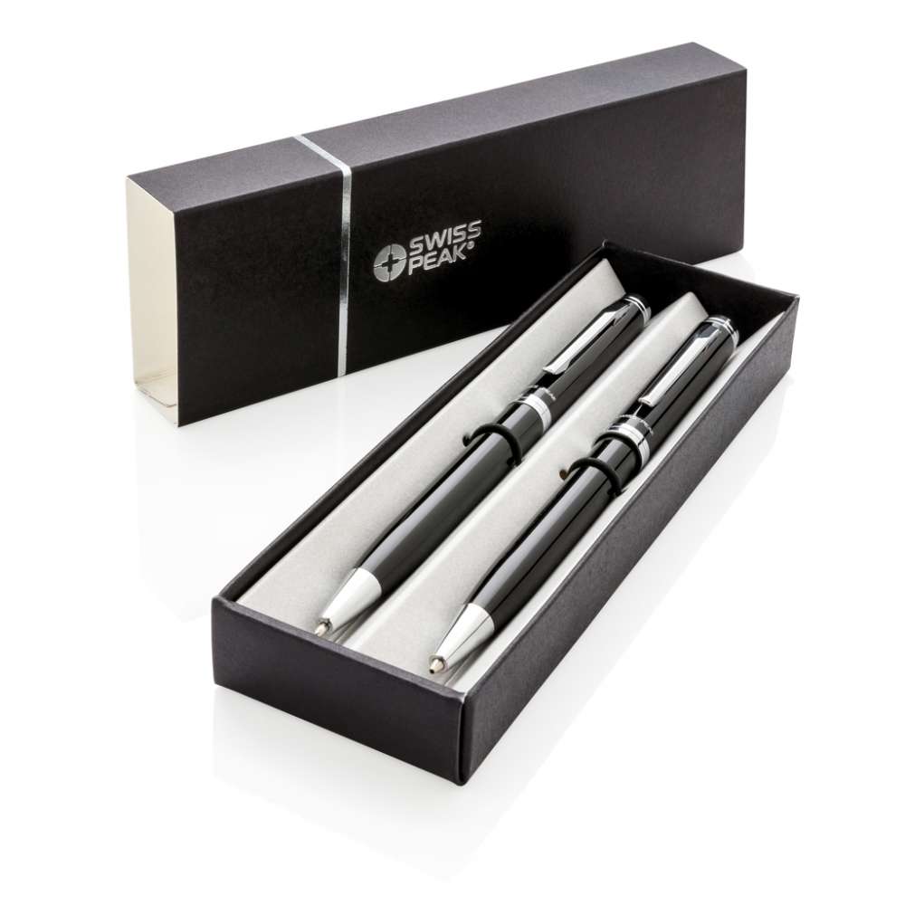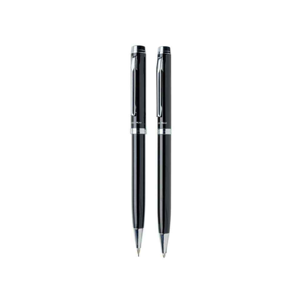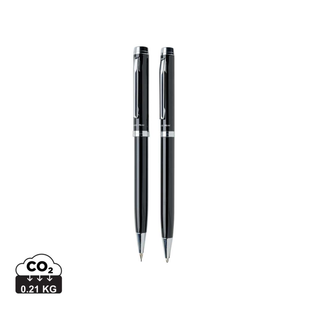 Set bestående av en kulspetspenna och en stiftpenna som båda kännetecknas av kvalitet och elegans. 1200 m skrift, tyskt bläck. 3 st 0,7 mm stift medföljer. Levereras i Swiss Peak presentförpackning.