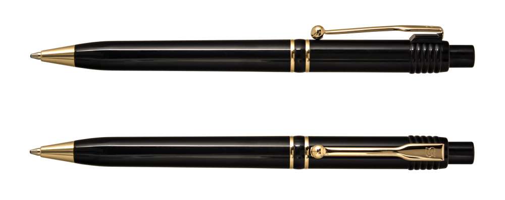 Italiensk kvalitetspenna med tidlös och elegant retrodesign. Finns i flera utföranden och färgkombinationer. Här med solid högblank pennkropp och guldfärgade metalldelar.