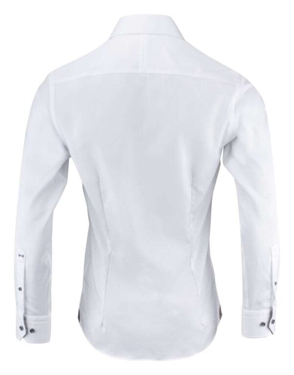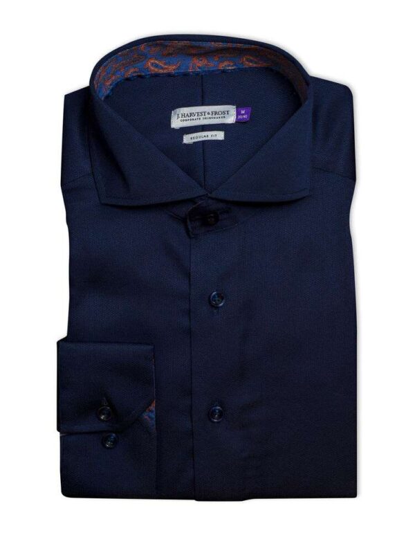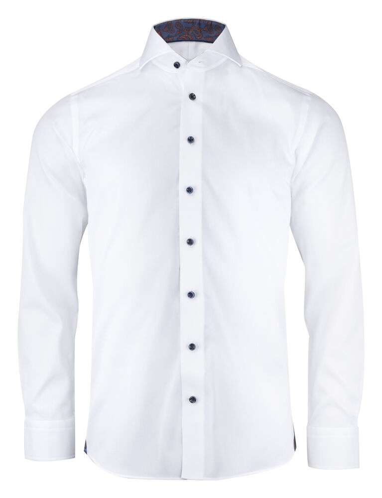 Tygets microcord-struktur i kombination med extreme cut-away krage och en kaxig paisleykontrast, gör att denna modell sticker ut från mängden. Vi bjuder på starka kontraster på den vita skjortan, och mer diskret på den lyxiga marina. Med jeans och en blazer eller med en kostym och sneakers är du oklanderlig, från kontoret till middagsbjudningen.