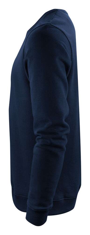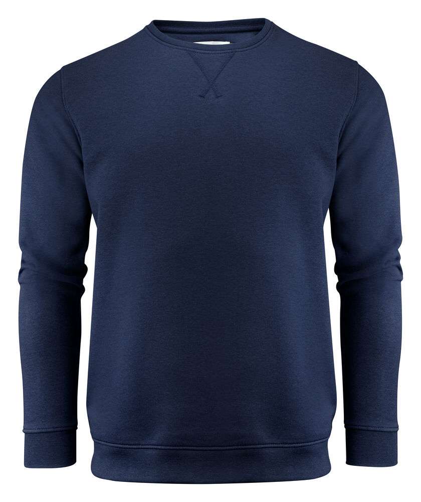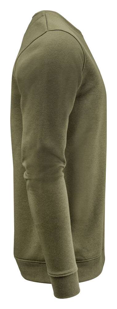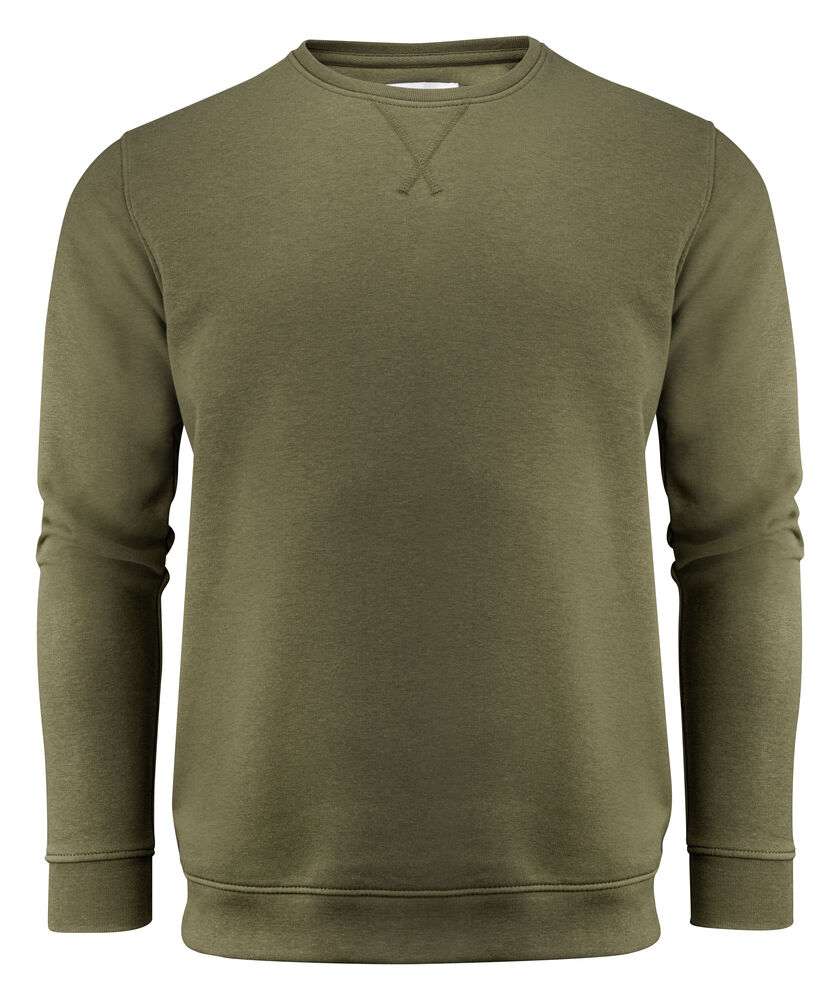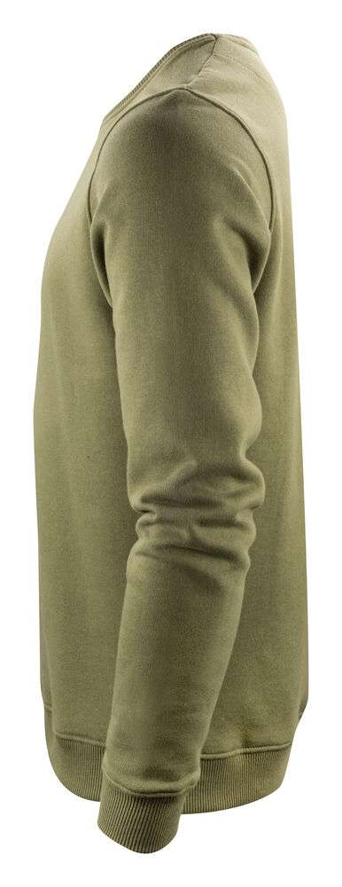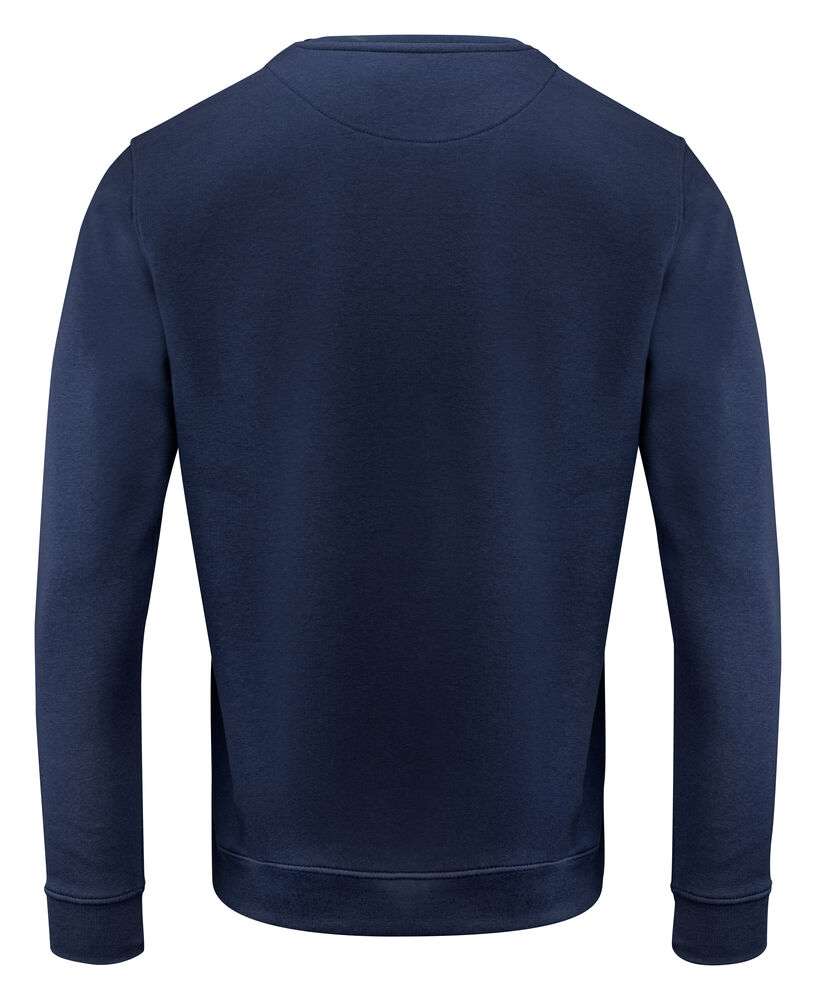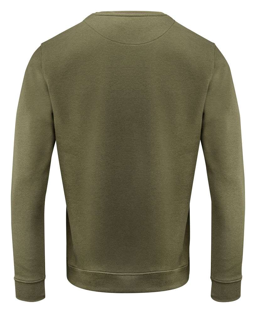 Rundhalsad sweatshirt med halvmåne i nacken. Borstad på insidan. Ribbstickade muddar. Oeko-Tex, ekologisk bomull och återvunnen polyester.