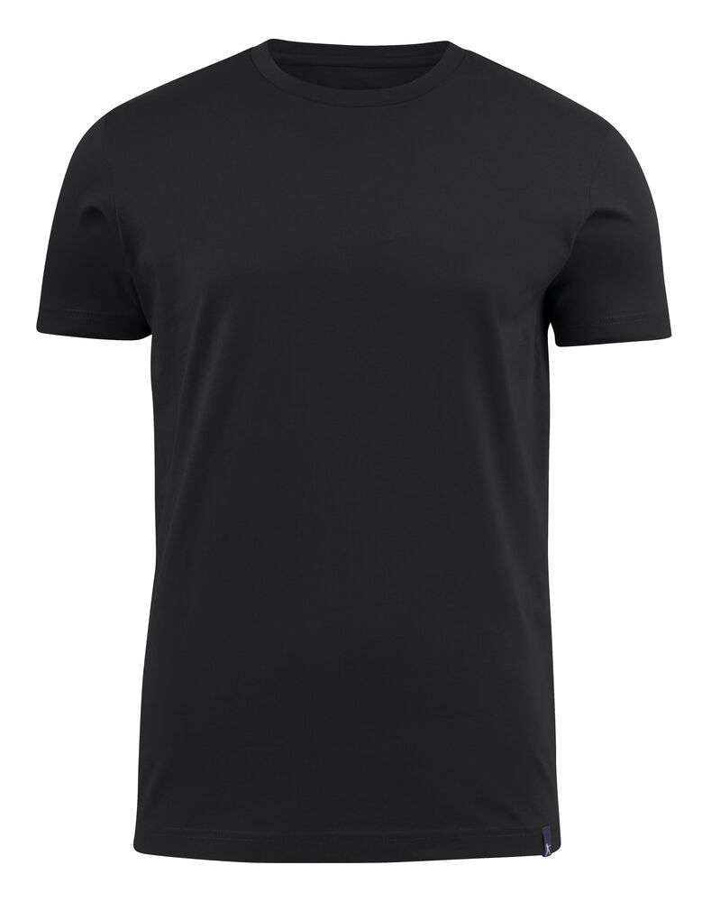 Rundhalsad T-shirt. Stretchig 2-lagers ribb i halsen. Oeko-Tex certifierad.
