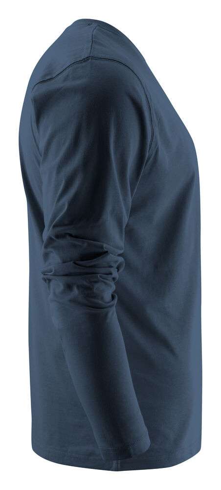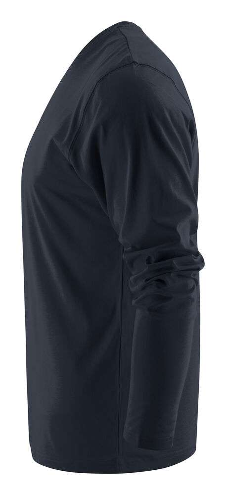 Långärmad T-shirt med modern passform, förstärkning vid axelsömmar och dubbla sömmar runt halsen. Elastan i halsmudd med 4-lager för stabilitet. Inuti finns en ficka för att sy in tvättchip. Levereras i en biobaserad, nedbrytbar påse. Oeko-Tex certifierad.
