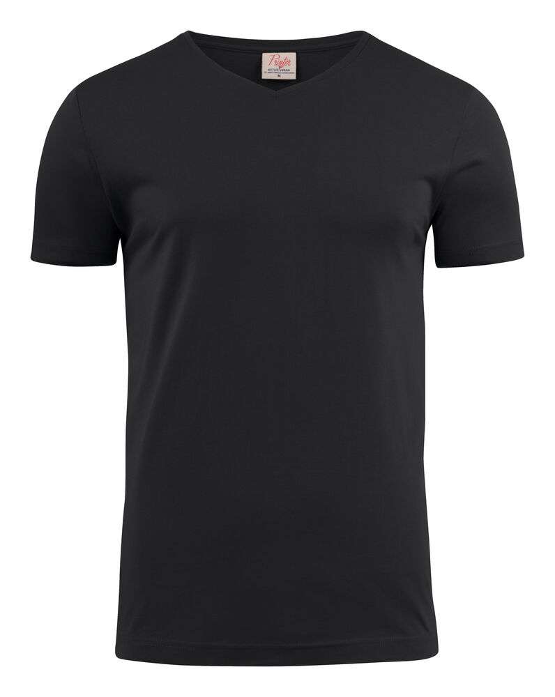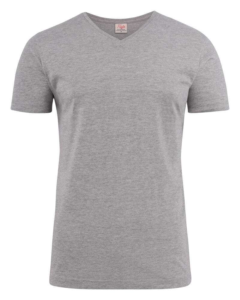 Modern V-ringad T-shirt med förstärkta axelsömmar och nacke. Stretchig 2-lagers ribb i halshål. Oeko-tex certifierad