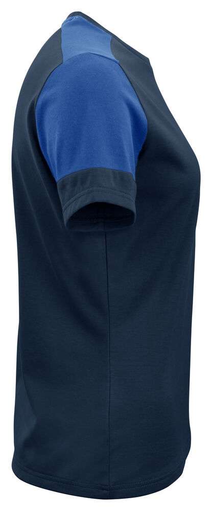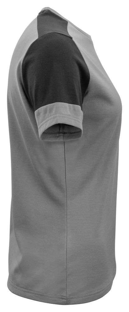 Tvåfärgad T-shirt i modern passform. Elastan och fyrlagers mudd i halsen för bättre formbeständighet och stabilitet. Avrivbar nacketikett med separat storleksetikett. Ringspunnet tyg med enzymtvätt, som krympbehandlar materialet samt ger det en mjuk yta. I vänster sidosöm finns en tvättchipficka. Testad för industritvätt enligt ISO 15797. Oeko-Tex 100-certifierad och levereras i biobaserad, komposterbar påse.
