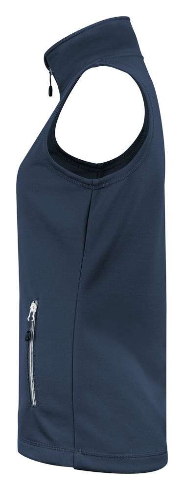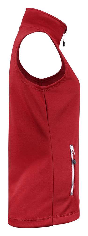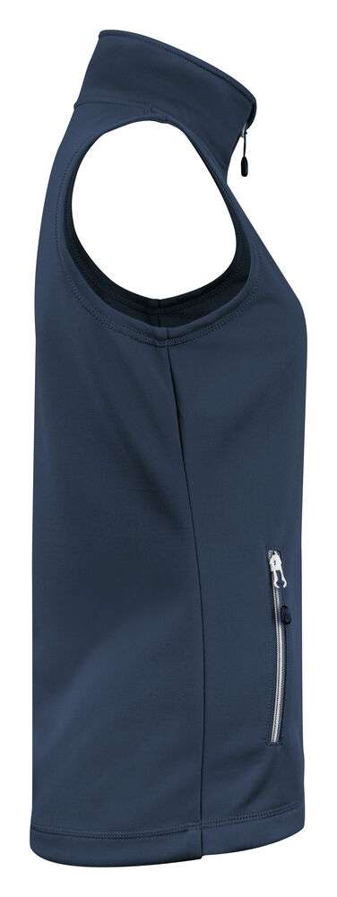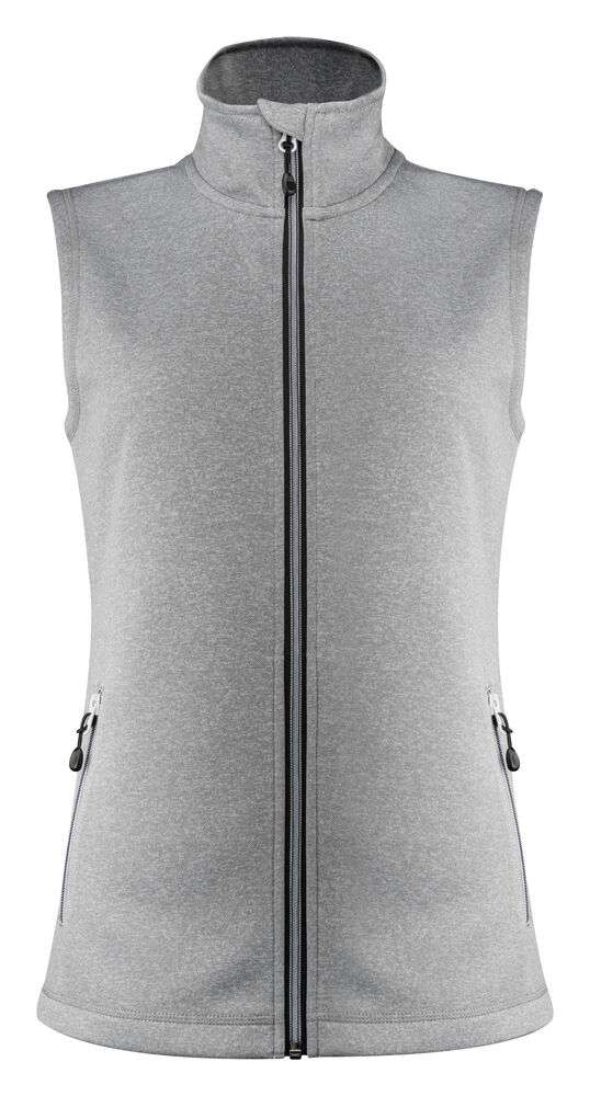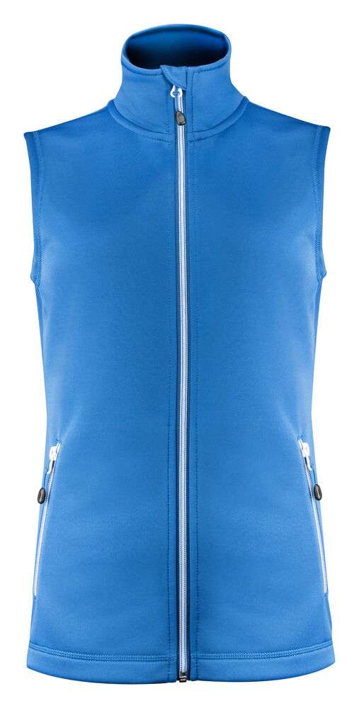 Väst i polyesterstretch. Med kontrast i dragkedja och interlocksömmar. Spun dyed.