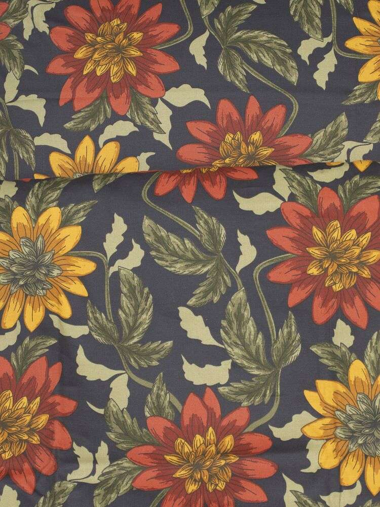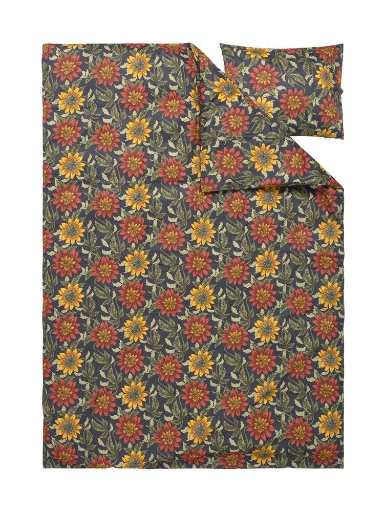 Ett vackert bäddset i mjuk satin, med generösa blomster i dämpade nyanser mot en grå botten. Sidenlen yta och en fin lyster ger både sängen och rummet en känsla av lugn. Ett skönt val för dig som vill omge dig med mjuka former och stillsamt mönster.