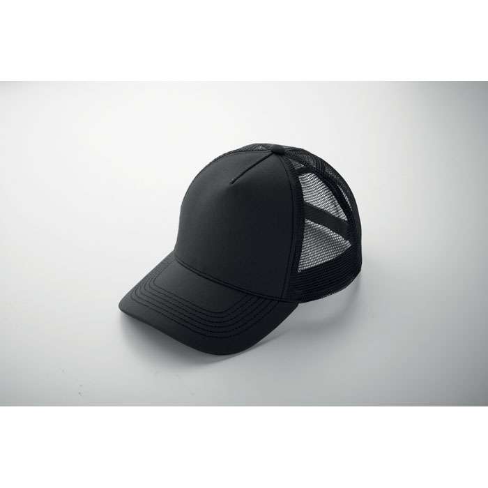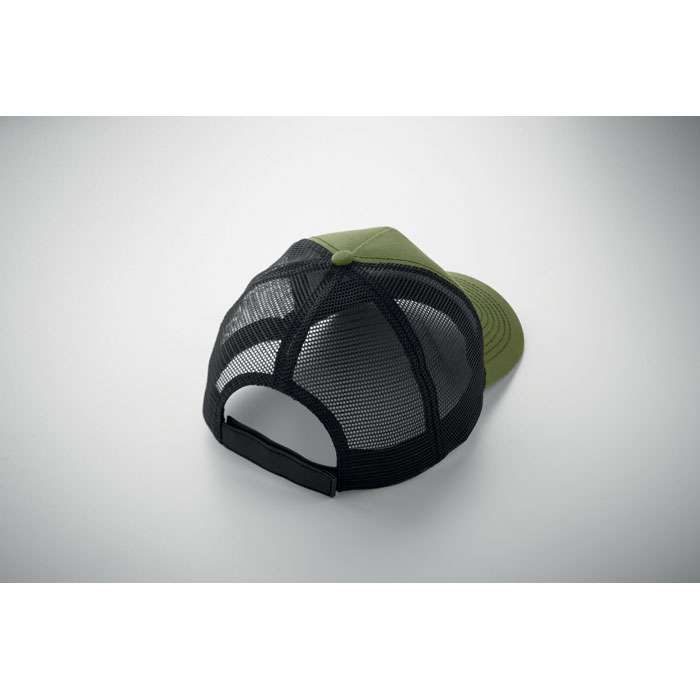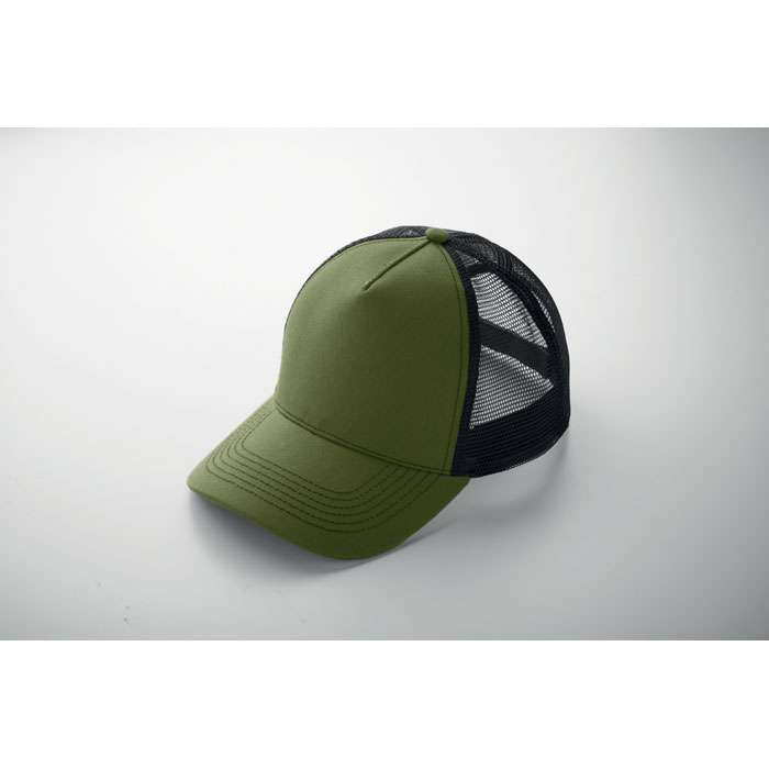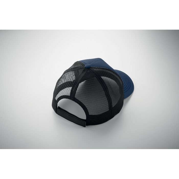 5-panels truckerkeps med framstycke och skärm i 250 gr/m² bomull, bakstycke i polyester, kardborreknäppning.