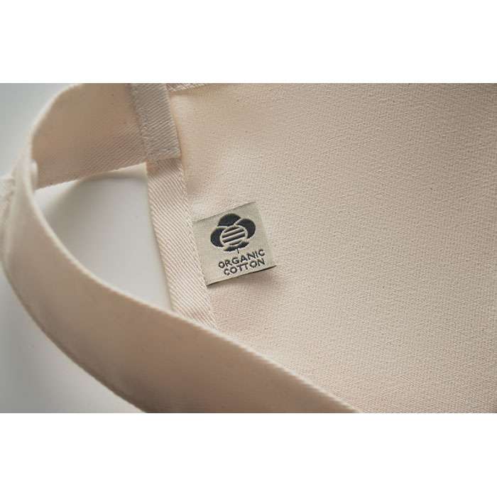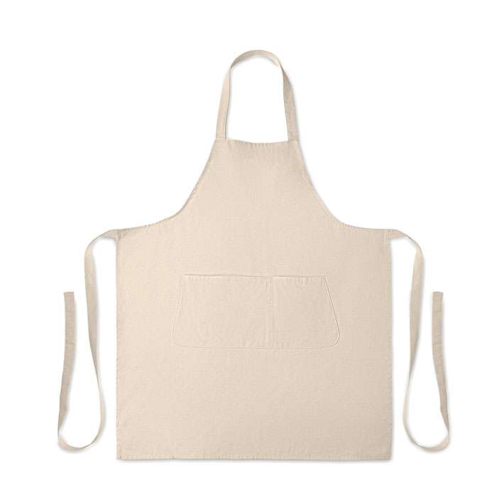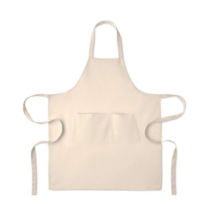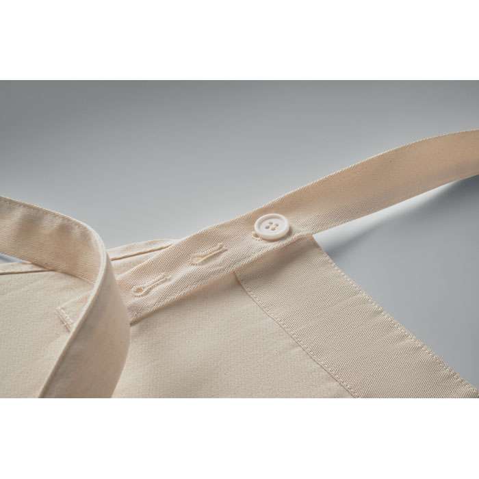 Justerbart förkläde med 1 stor framficka med 2 fack i 240 gr/m² ekologisk bomull. Med justerbar knapp på halsremmen.